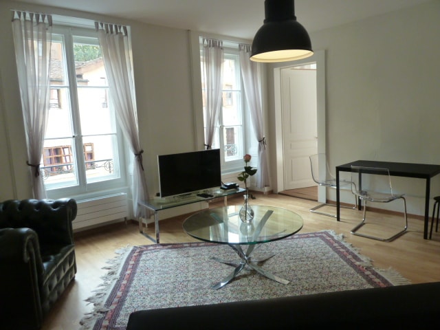 Cerca de la plaza Pury. En el centro de la ciudad de Neuchâtel, a 100 metros del lago, a 50 metros de las paradas de autobús. Castillo, Colegiata, Museos, tiendas, restaurantes cercanos. Sin cocina, pero con nevera, microondas/horno, cafetera Nespresso. La Neuchâtel Tourist Card, si se desea, debe solicitarse 3 días antes de la llegada y se enviará por correo electrónico.