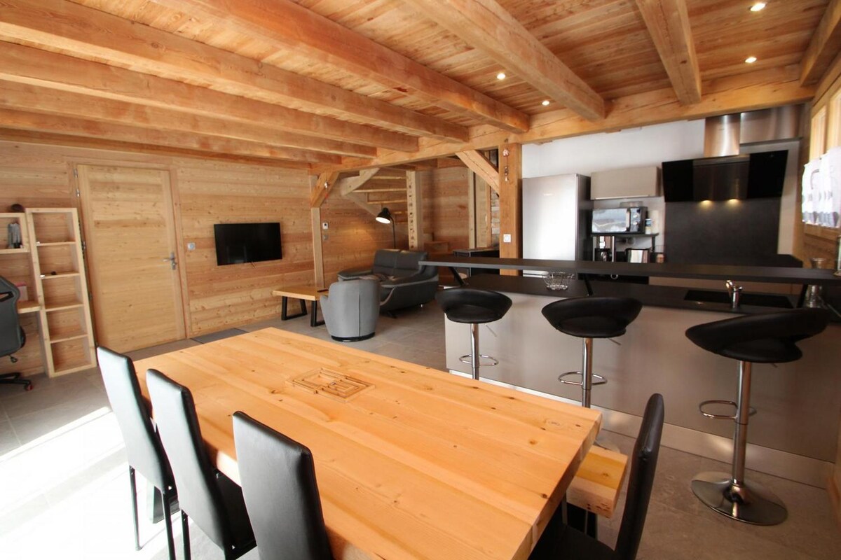 Chalet independiente para 6 personas con terraza grande.(RESERVA SOLO EN AIRBNB) Ubicado en una zona tranquila, a orillas del río Arc y cerca de las estaciones de esquí (ver detalles de las distancias en la descripción: cómo acceder) el parque Vanoise. ¡Ideal para unas vacaciones exitosas tanto en verano como en invierno! Ya sea que tu pasión sea la montaña, el esquí, la pesca o las vacaciones en familia... ¡el chalet es para ti! Acceso directo al río. 1 chalet idéntico cercano > posibilidad de alquilar ambos para 12 personas