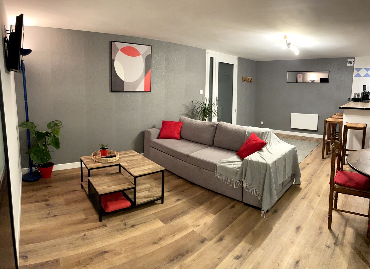 Bienvenido a la «Boot House», ¡nido TOTALMENTE NUEVO de 45 m2 muy bien decorado y TOTALMENTE EQUIPADO! Al entrar, encontrará una zona de TV conectada a la fibra. Una hermosa mesa con capacidad para 4 personas. Una cocina totalmente equipada (horno, placa eléctrica, campana extractora conectada, lavadora, lavavajillas, nevera, …) que formarán el confort necesario para su tranquilidad. ¡Adelante y encontrará a la izquierda el baño y todo recto una bonita habitación con cama doble de 160 con gran armario!