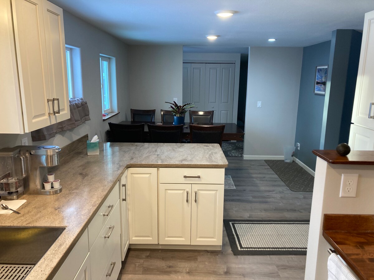 ¡Saca el equipo de invierno! Tu estancia en el Shabbin es una habitación privada que tiene todo lo que necesitas. Código de acceso de entrada bloqueado. 1 cama queen y almohadas. Se proporcionan ropa de cama y toallas de baño limpias. Inodoro, ducha, cocina con fogones de 4 fuegos, ollas y sartenes, vajilla y cubertería para 4, cuchillos de cocina, algunos platos para hornear, copas de vino/abridor, molinillo de café, abrelatas, armario para comestibles, nevera/congelador. TV con Apple TV. *Advertencia: no utilices Apple Maps