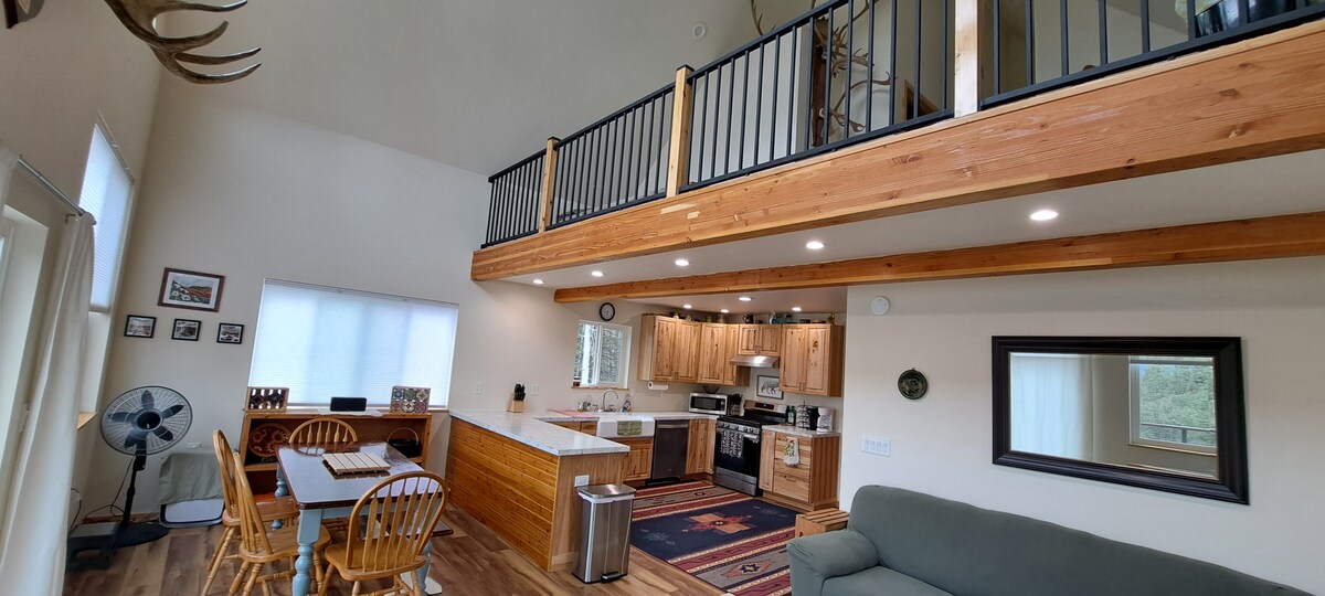 La casa de campo es una casa de huéspedes aislada en un barrio agradable con vistas espectaculares al glaciar Knik y al río. Este refugio tiene capacidad para un máximo de cuatro huéspedes. Es un plano de planta abierta con una cama doble en la planta baja y dos camas individuales en un loft de arriba. La cocina tiene placa de inducción, nevera, cafetera y microondas. Barbacoa de propano en la terraza y baño con ducha. Nuestra casa de campo no es visible desde la zona de aparcamiento, por lo que el registro autónomo no es una opción.
