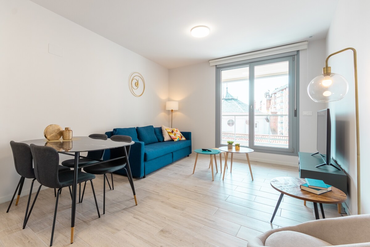 Licencia vivienda eso turístico (VuT 34-08) Apartamento acogedor y céntrico en edificio de muy reciente construcción con calidades de lujo. Ideal para parejas que quieran conocer y disfrutar de esta bella y desconocida ciudad. La decoración del apartamento es puramente moderna y con estilo, dando un toque especial y diferenciador. Descanso en colchón de alta calidad Acceso a Internet ultrarapido via WIFI (o cable LAN) y TV 3D 48" Parking en garaje gratuito Os esperamos