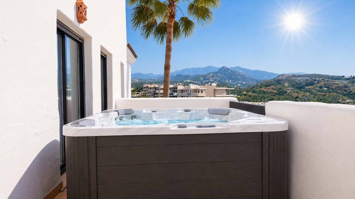 Espectacular ático en Calahonda, uno de los lugares con más encanto de la Costa del Sol. Ubicado en una zona con todo tipo de servicios y a escasos minutos andando de la playa, este ático-apartamento de dos dormitorios hará de tus vacaciones una experiencia inolvidable. Prepárate para pasar veladas irrepetibles en su increíble solarium, donde podrás disfrutar de los mejores atardeceres de la costa, con vistas al mar y a la montaña, mientras disfrutas de un baño en su encantadora bañera exterior.