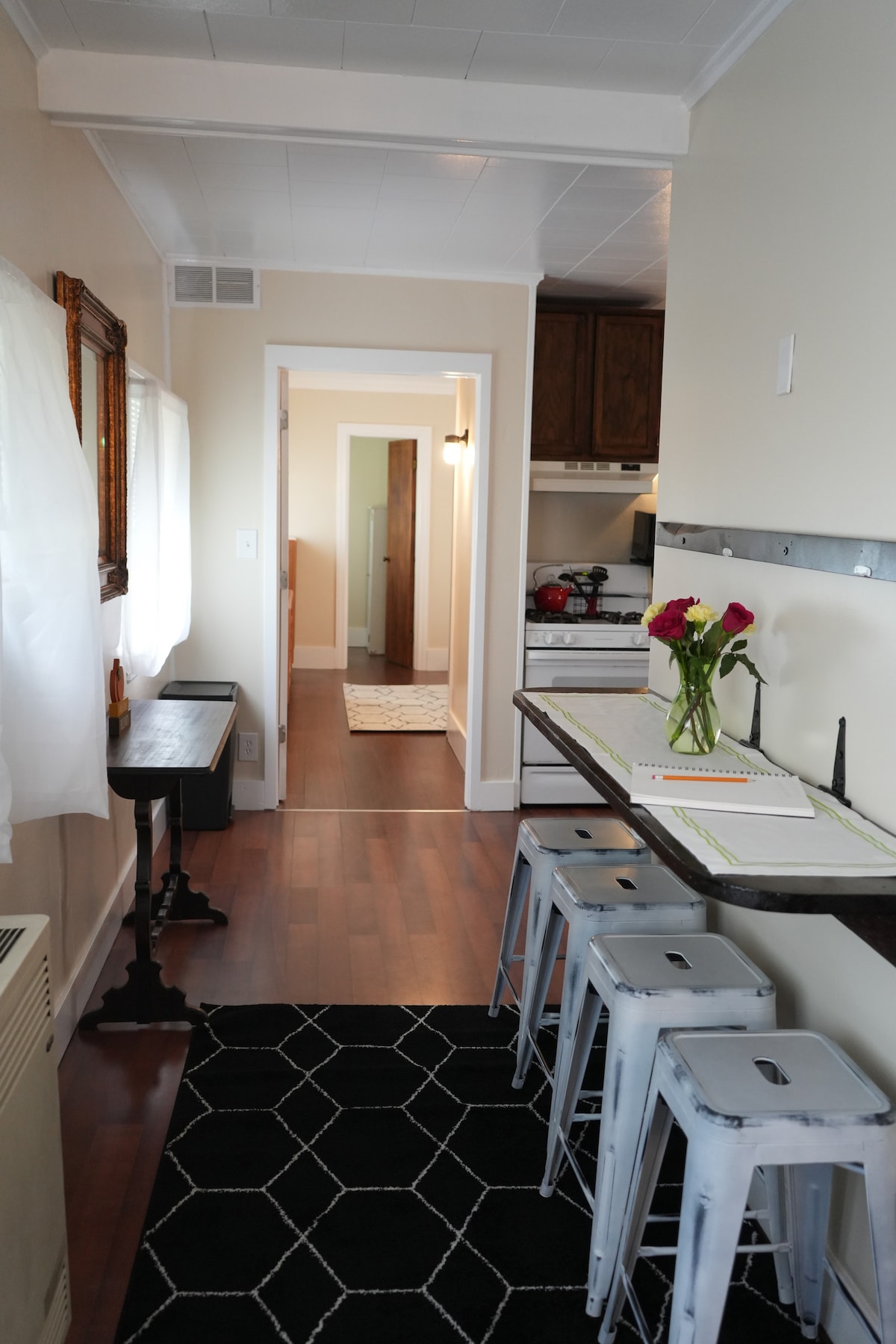 ¡Bienvenido a su refugio boutique en el corazón del centro de Troy! Este acogedor estudio en el segundo piso, diseñado por una artista local, está escondido en una cochera independiente con una entrada privada junto a un caprichoso mural de la artista local Kayla Ek y un exuberante patio inspirado en Nueva Orleans. A solo unos pasos de los mejores restaurantes, arte, vida nocturna y lugares para bodas de Troy, y a menos de una manzana del acceso a RPI, esta joya es perfecta para una escapada romántica, una escapada en solitario o una estancia con estilo mientras visitas la zona.