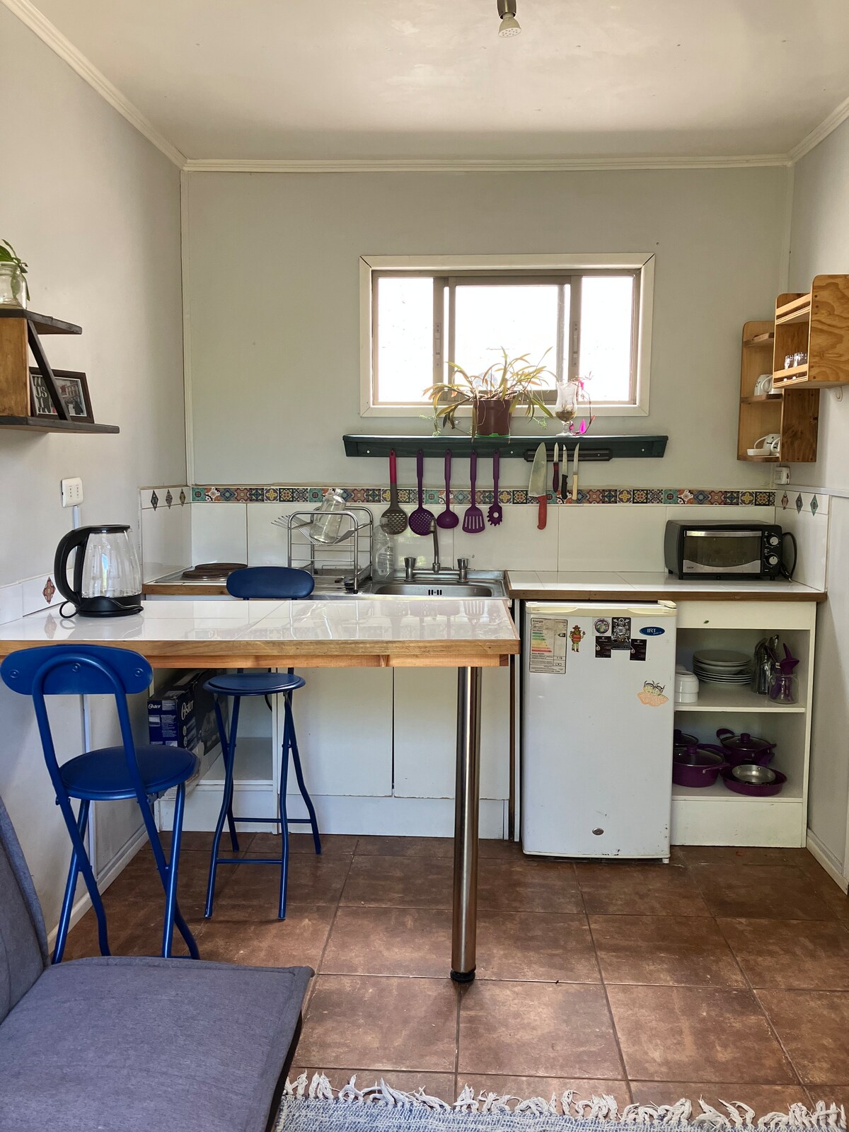 Espacio independiente a orilla de calle, para 1 persona o pareja , dormitorio con cama de 2 plaza, baño,cocina pequeña con accesorios y espacio para comer En cerro alegre, con locomoción cercana, se puede llegar a la puerta en colectivo o Uber. Si se requiere alguna cosa se puede solicitar al dueño de casa.Solo deben traer toallas. Con acceso a una terraza de la propiedad con vista a la bahía de Valp. negocio de barrio muy cerca,el lugar es pequeño