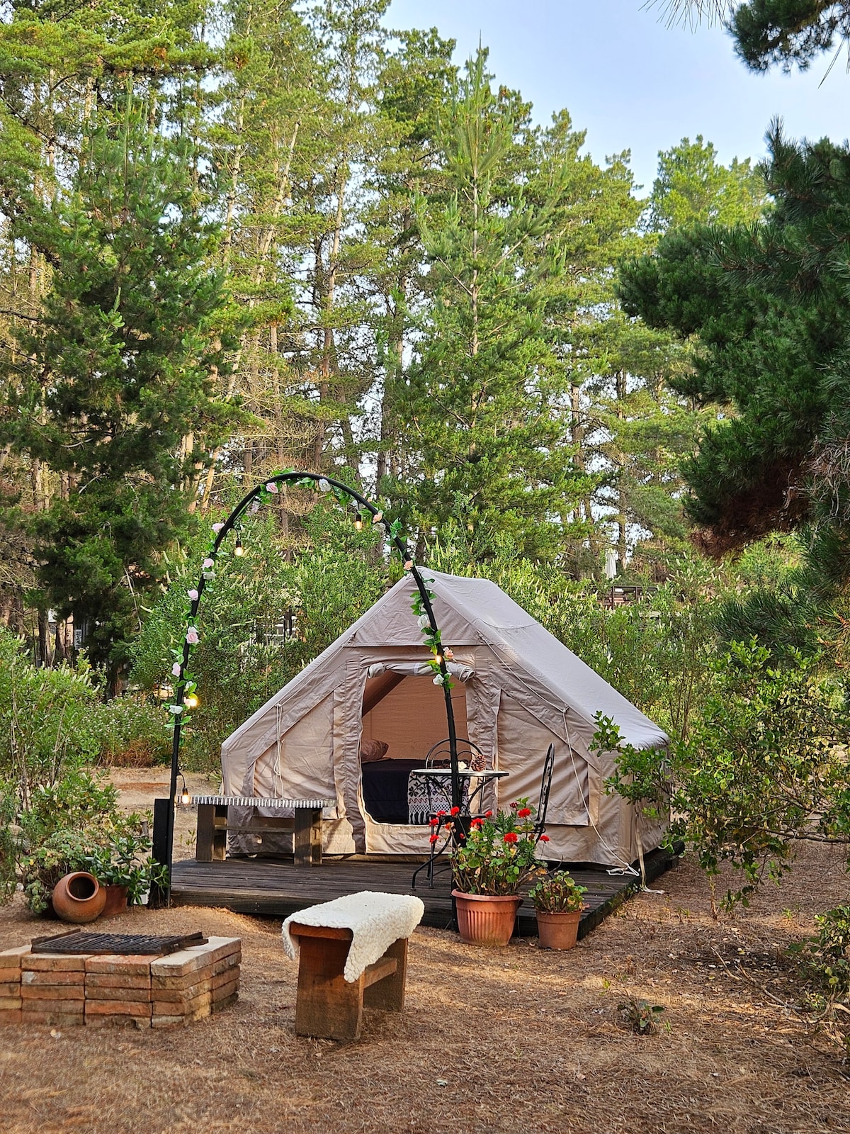 Bienvenidos a nuestra exclusiva experiencia de Glamping, donde la naturaleza se encuentra con el confort de un hotel boutique. Duerme en una tienda safari de alta gama, equipada con una comoda cama Queen Size colchon Emma y despiertate con el sonido de los pinos. Este no es solo un campamento, es un retiro diseñado para la relajacion profunda y la aventura. TE ESPERAMOS!