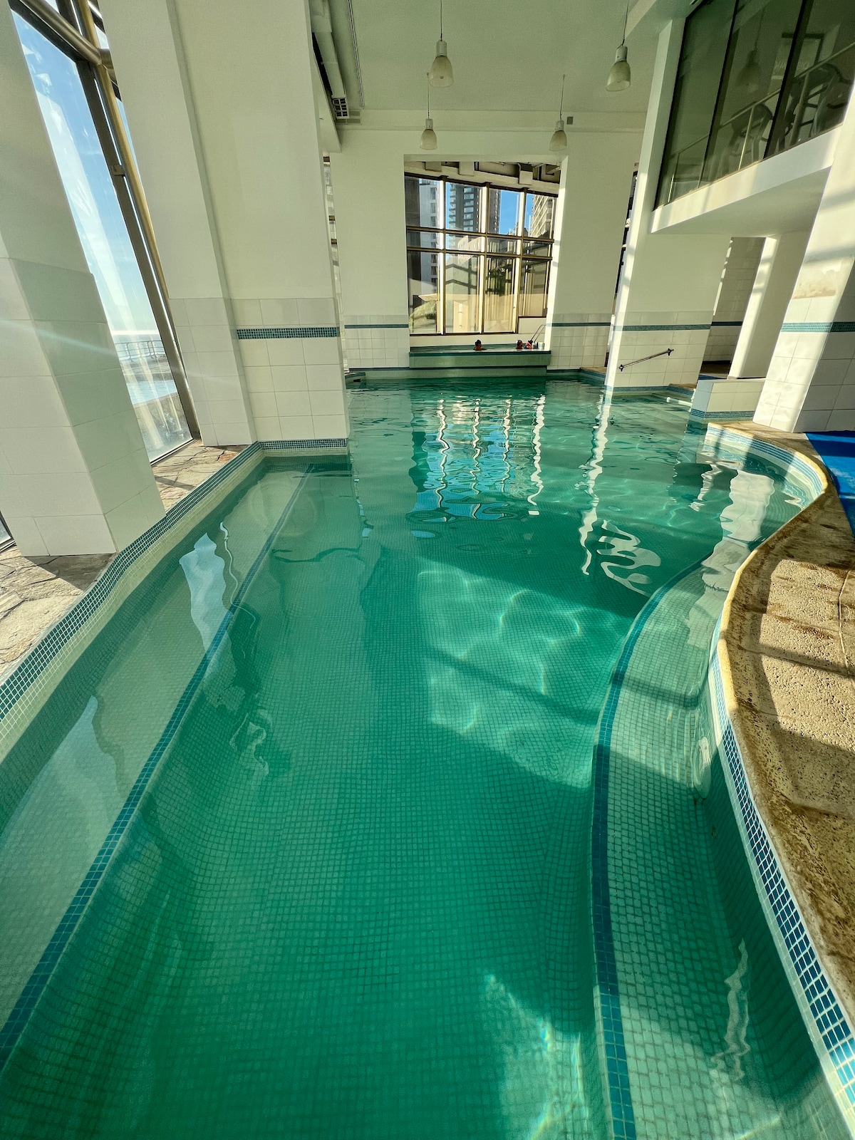 Ubicado frente a la playa y a la lado del mall. Tienes todo a la mano en un edificio de primer nivel con 2 piscinas. Hay una sala para lavar la ropa. Si no quieres salir tendrás una maravillosa terraza para ver los mejores atardeceres de la quinta región. Se recomienda venir en auto si no le gusta caminar. La piscina interna necesita uso de gorro plástico para natación (en todo Chile). Este gorro es de uso personal e instranferible por lo que debe traer el suyo.