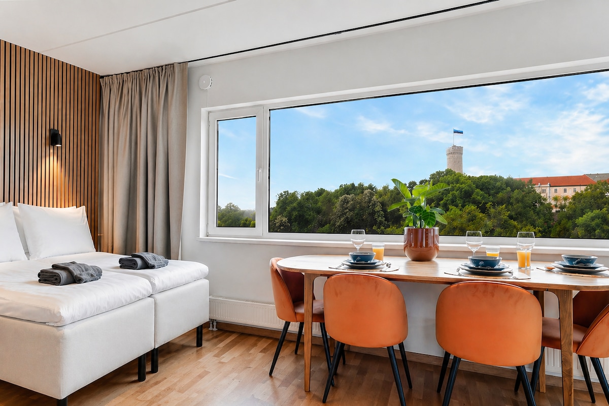 Discover a bright, modern studio retreat - designed for couples and small families seeking a peaceful stay with stunning Old Town views. Enjoy a renovated interior, a spacious 43 m² open-plan layout, and a 55” Smart TV. Located just 2 minutes from Old Town, this home offers comfort, convenience, and space to unwind. Paid parking is available. And one more amenity you can’t filter for: a very friendly host. 😄