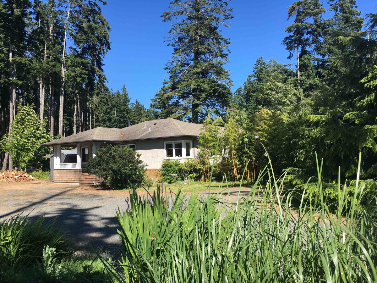 Una hermosa casa de madera de cedro Pan Abode con chimenea, tres comedores; 2 interiores y terraza, y uso no exclusivo de nuestra piscina climatizada (del 15 de mayo al 10 de octubre) y jardines. Jacuzzi todo el año. Deja que Pam y Jack te presenten lo mejor que la costa oeste puede ofrecer...en tierra y en o bajo el agua. Jack y Pamela tienen una suite con entrada independiente a la casa y tienen la mayor parte del cuidado. Damos la bienvenida a familias y grupos respetuosos. Se incluye un anuncio adicional para una casa de campo.