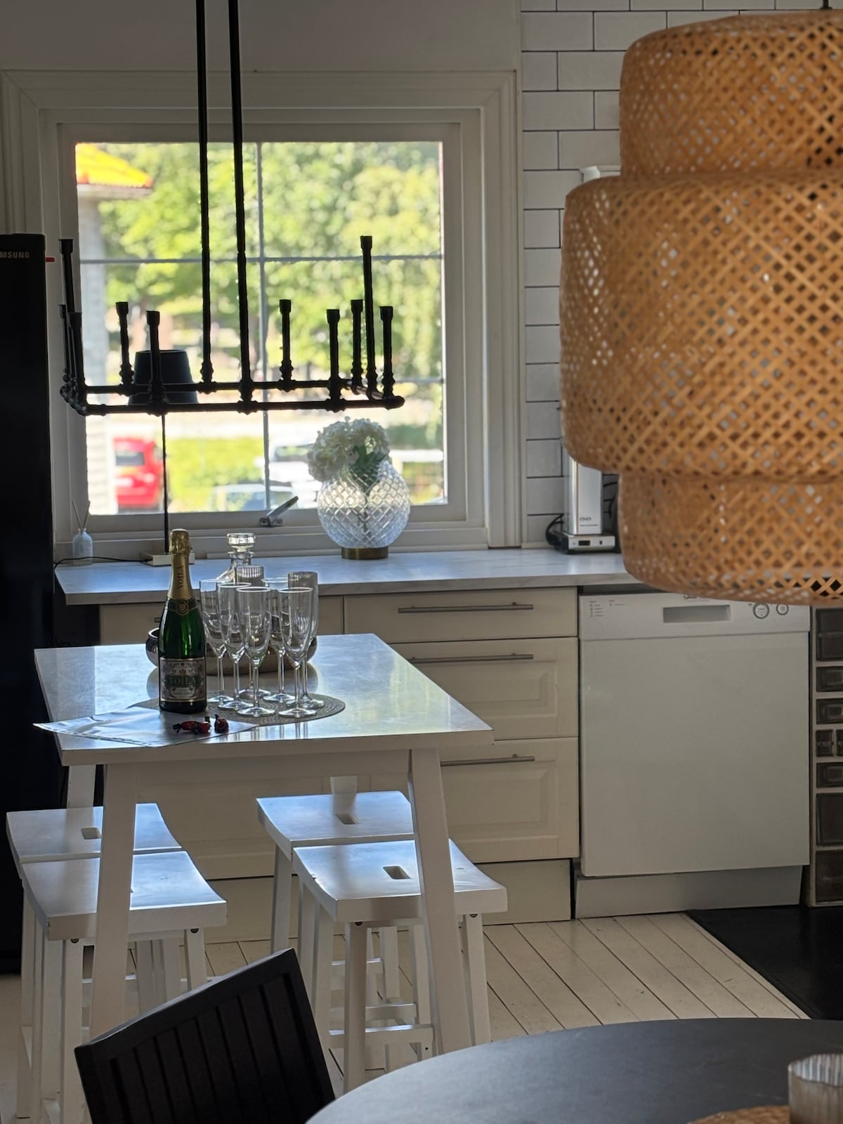 Tu familia estará cerca de todo cuando se aloje en este céntrico alojamiento. Autobús al centro en 10 minutos. En una tranquila calle sin salida con aparcamiento gratuito, así como un jardín con flores privado con una valla alrededor, un balcón soleado y una parrilla. Cocina moderna, amplio salón, mucho espacio para cenar tanto al aire libre, en el comedor o en la cocina. En la planta superior hay 3 dormitorios en alquiler, aseo/ducha con vistas a Gotemburgo. En el sótano hay una gran lavandería, sauna y una ducha adicional.