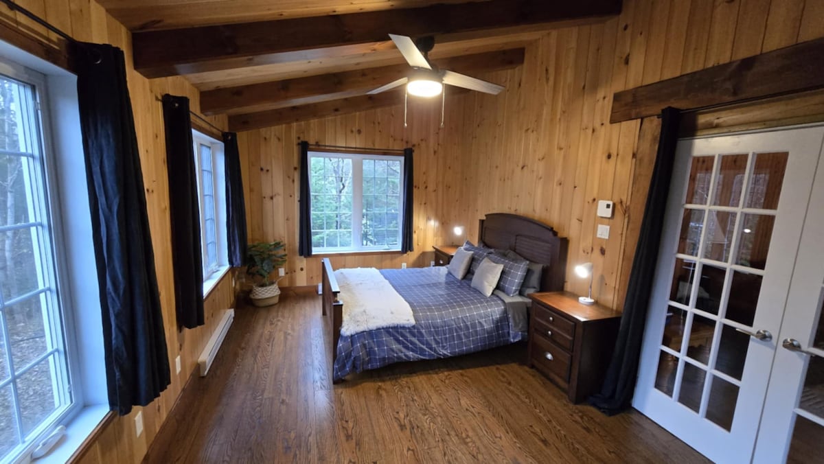 ¡Un pequeño chalet rústico directamente en el lago con un ambiente genial! A solo 1 hora y 15 minutos de Montreal, este es tu escondite del estrés de la ciudad. La hora feliz en el muelle privado es todo lo que necesitas para desconectar. Una nota de precaución, ¡puede que te enamores del encantador Beaulac! La casa es pequeña y rústica, pero bastante adorable, con una hermosa vista al agua, así como un jardín abundante y energizante que proporciona privacidad de los vecinos. ¡El lago está limpio, se analiza con frecuencia y es perfecto para nadar!