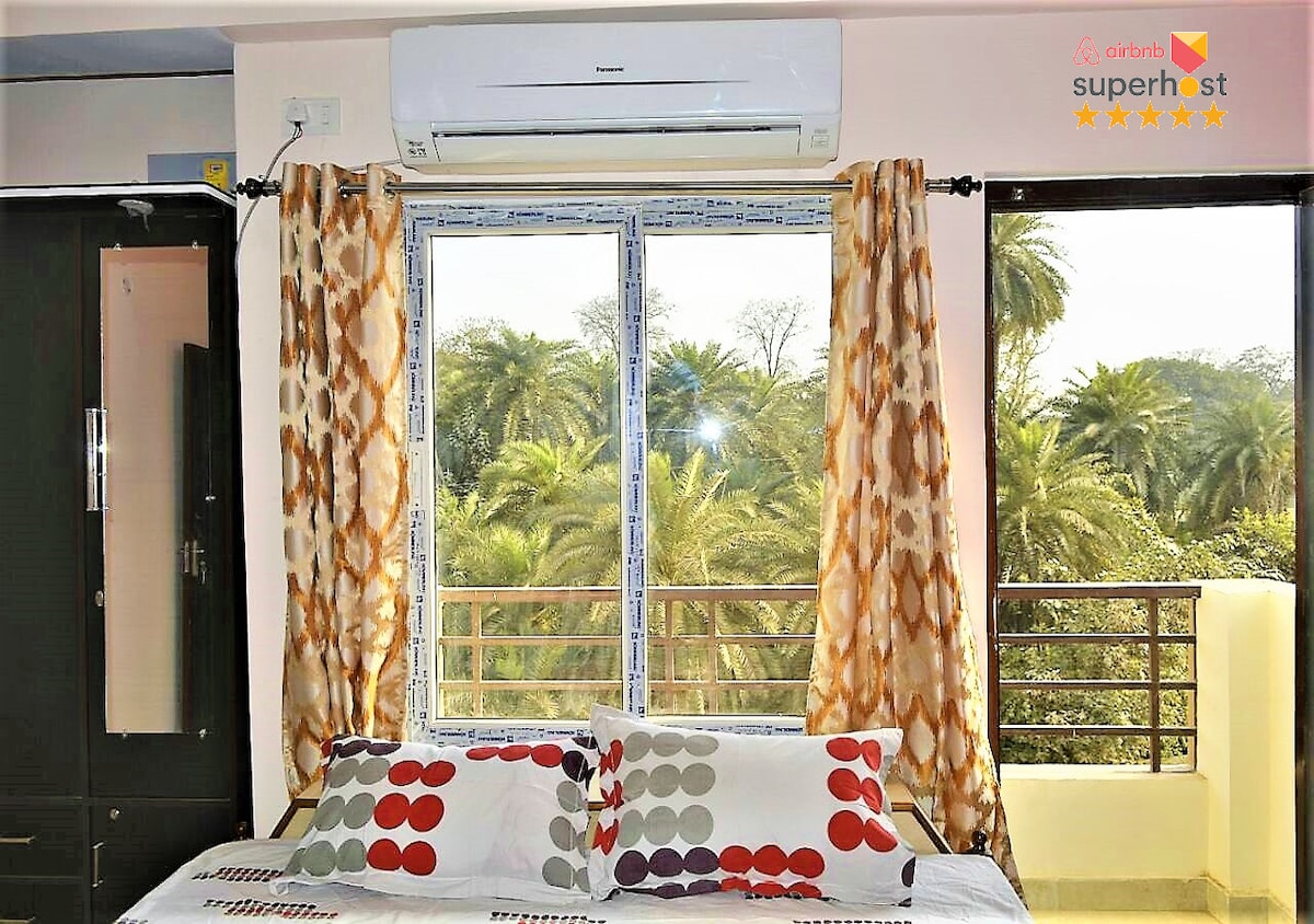 ✨Entire Modern 2BHK Apartment in Central Varanasi located in a safe, peaceful residential area, far from the chaos of traffic, surrounded by an open environment. We provide reliable local transport (auto or toto) 24 hours at a reasonable cost on demand at your doorstep for visits. ✨ Stay in comfort and style at our thoughtfully designed apartment, just a 10-minute ride to Assi Ghat – the cultural and spiritual heart of Varanasi. Ideal for families, friends, or small groups of up to 6-7 guests.