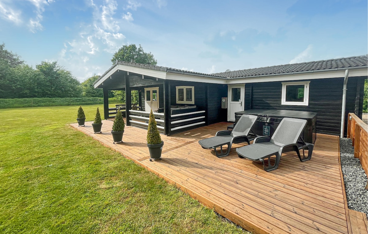 Relájate con toda la familia en esta tranquila casa de 130 m2, con acceso gratuito al parque acuático y a los bolos, así como a otras actividades. Preciosa casa de vacaciones con spa y baño en la naturaleza y una ubicación única con vistas a la bahía de Ho. La casa de vacaciones tiene una buena y espaciosa cocina/sala de estar con una estufa a leña y una bomba de calor. Las habitaciones son buenas y espaciosas. Desde el salón de la casa está el baño de salida en el desierto que se calienta con leña (la leña no está incluida). Actividades: incluidos columpios, sandbox y trampolín.