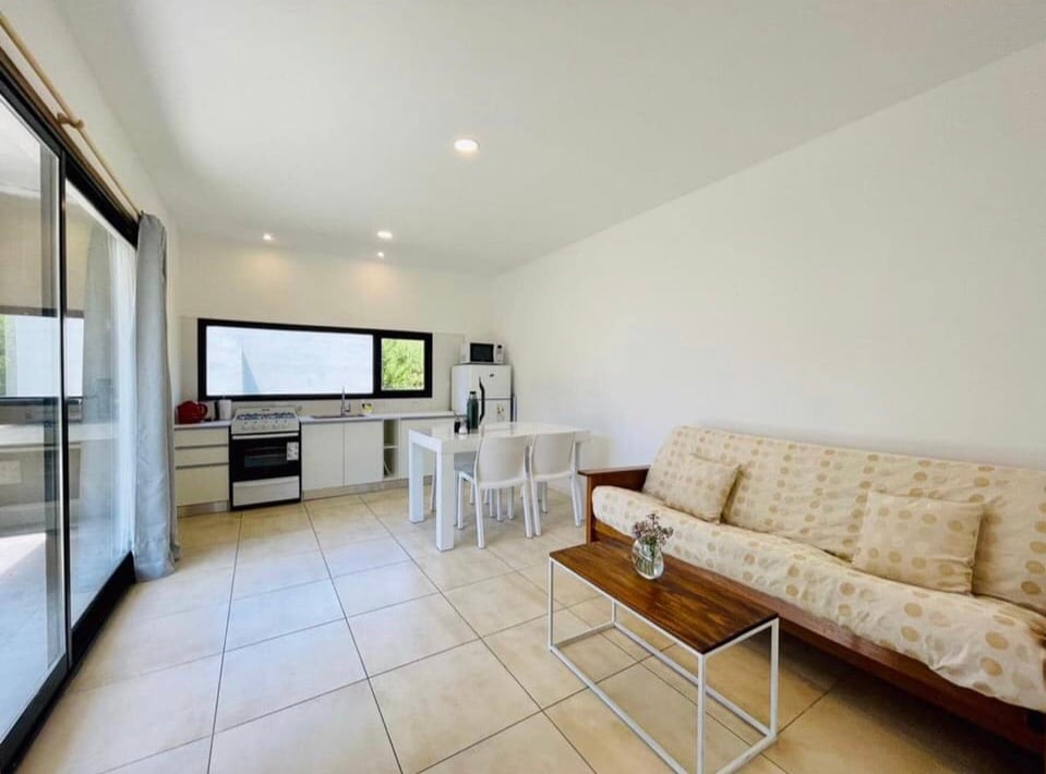 Casa 2 ambientes nueva. Entrada independiente. Garage semi cubierto para un auto. Emplazada en lote de 450 metros cuadrados, parque y árboles. 1 Dormitorio con cama doble y placard nórdico. Cuarto de Baño completo. Cocina totalmente equipada, heladera con freezer, pava eléctrica y microondas. Living, comedor integrados, super luminoso. Ultimas tendencias en Deco. Smart TV / Wi Fi / Alarma inalambrica. Terraza con parrilla y accesorios en espacio semicubierto.