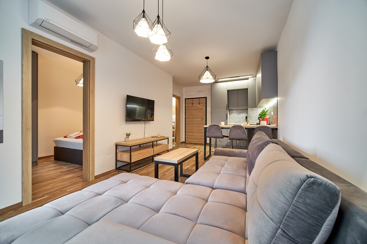 Seaside Escape with Stunning Sunrise Views | Pool | SPA and free underground parking Welcome to your brand-new coastal getaway in the premier Skyline Apartments! Start your mornings with a fresh cup of coffee on your private balcony, taking in breathtaking sunrise views over the sea. Whether you are looking for total relaxation or a romantic escape, this fully equipped apartment has everything you need for a perfect vacation.