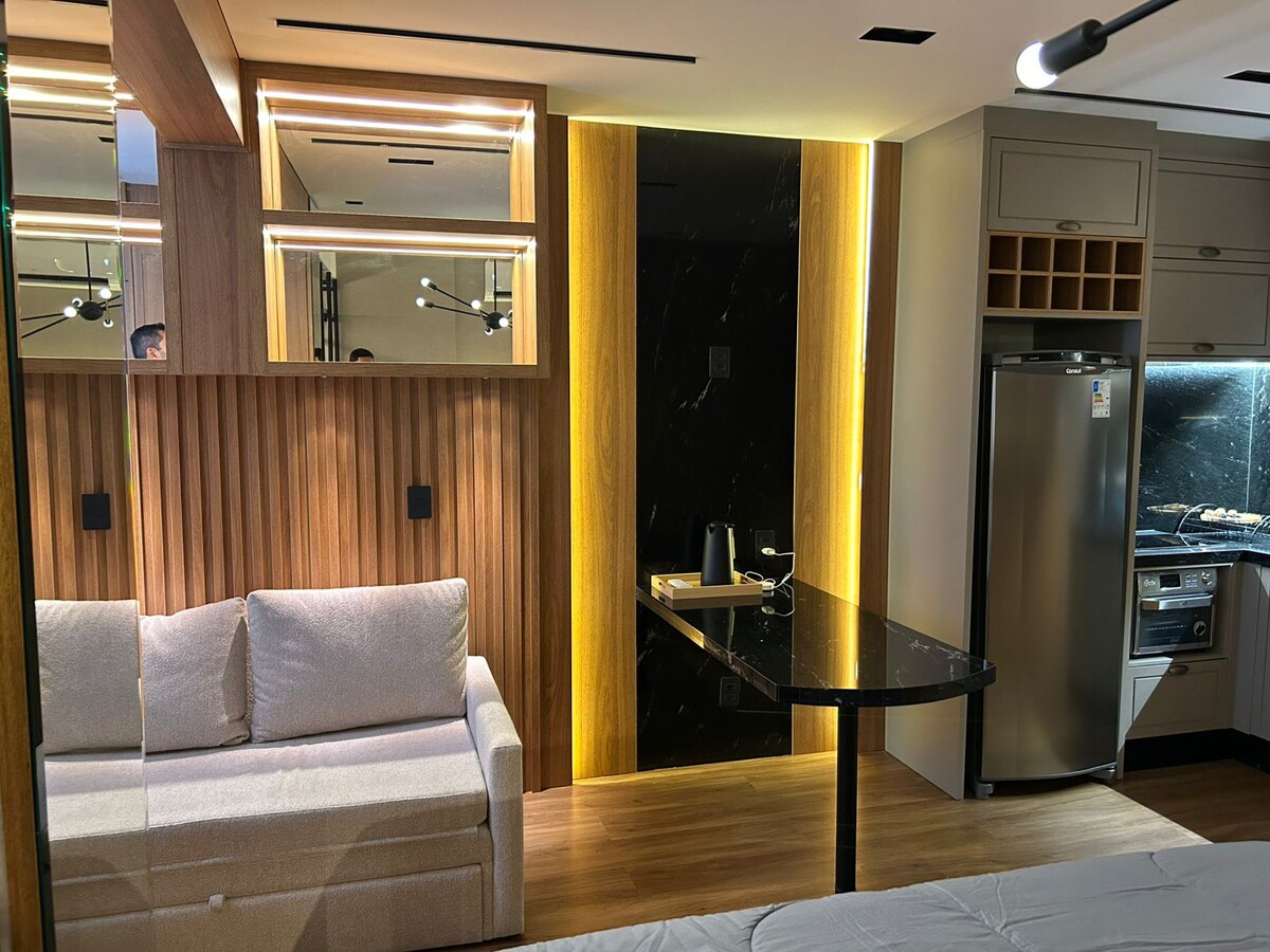 Studio c/ Garagem + Ar | Self Check-in (E)