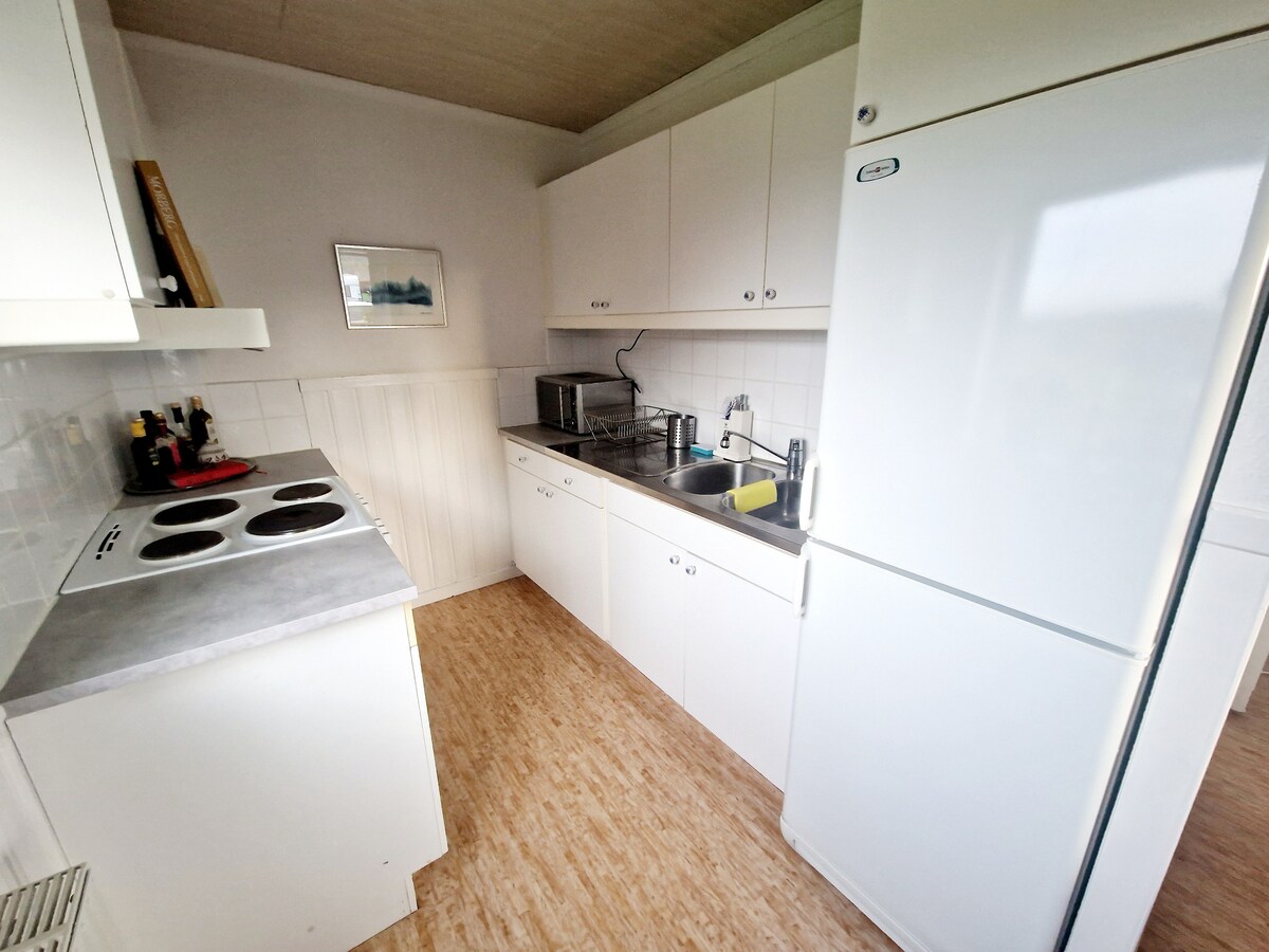 Tranquilo, en el límite del bosque y acogedora casa de vacaciones con 1 dormitorio con cama doble y sofá cama., baño con ducha/inodoro/secador de pelo, pentry con nevera./micro/mini horno/cafetera/tostadora/panificadora/cocina de agua y mucho más. Televisión plana con recepción satelital, wifi gratuito.