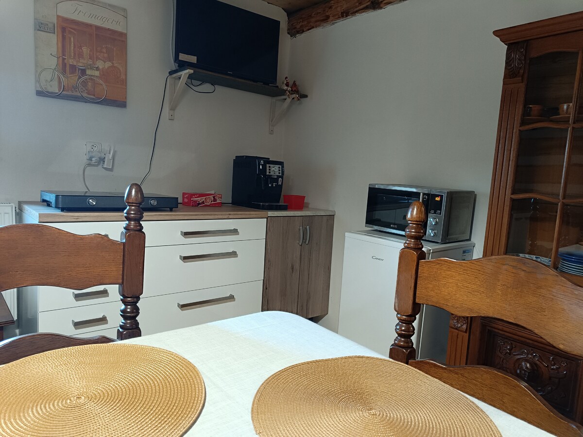 -A principios de 2024, renovamos y diseñamos de nuevo para nuestros huéspedes - Nuestro apartamento de unos 40 m² para no fumadores es para 2-3 personas. - Tiene una entrada independiente y una tranquila soleada terraza. - En el amplio salón-dormitorio hay una cama doble grande, un sofá cama, un sillón grande y TV vía satélite. - La pequeña cocina americana moderna ofrece todas las opciones de cocina. - El baño está equipado con ducha de cristal, calefacción por suelo radiante y secador de pelo.