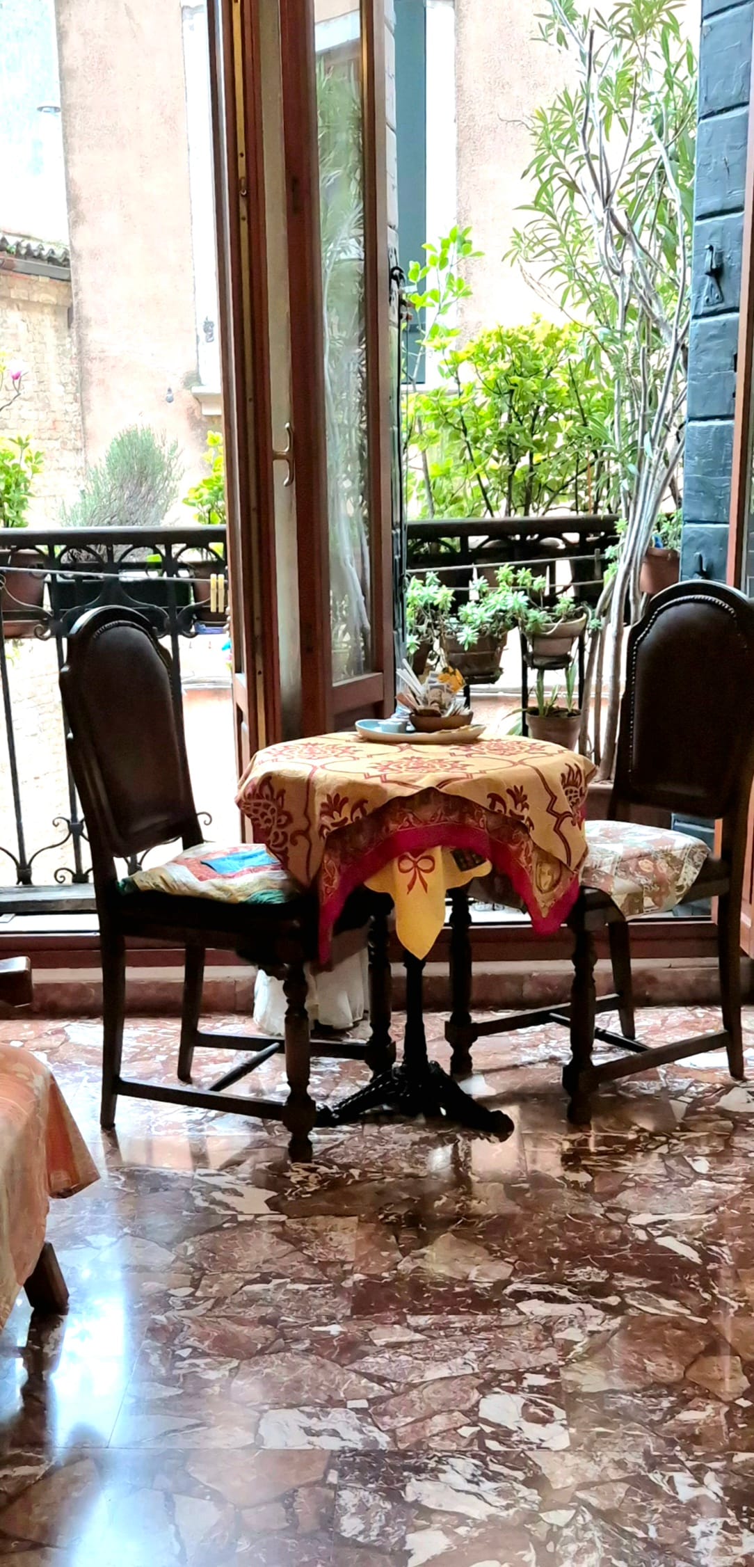En el corazón de Venecia, nuestro apartamento en un palacete del siglo XVI te recibe con la calidez de un verdadero hogar veneciano. El jardín privado, un lujo raro en la ciudad, será vuestro refugio de paz. Perfecto para disfrutar de un café por la mañana o una copa de vino al atardecer, abrazando el ritmo pausado de Venecia. Y si tenéis suerte, Merlino, el gato blanco y naranja de mis padres, podría hacer una visita al jardín.