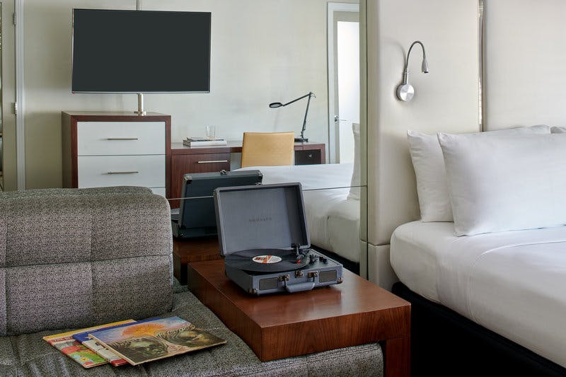 110-130 ft² · 10-12 m² Tiny in size, big on convenience! The Varden is a boutique micro-studio hotel. All rooms are intentionally compact and designed for efficiency. Layouts vary slightly, but the vibe and essentials are consistent: full-size bed, private bathroom, kitchenette, TV, free Wi-Fi and parking. Near Pine Ave and the East Village; walk to the Convention Center, Aquarium, and The Pike. Plenty of restaurants, bars, and cafés nearby.