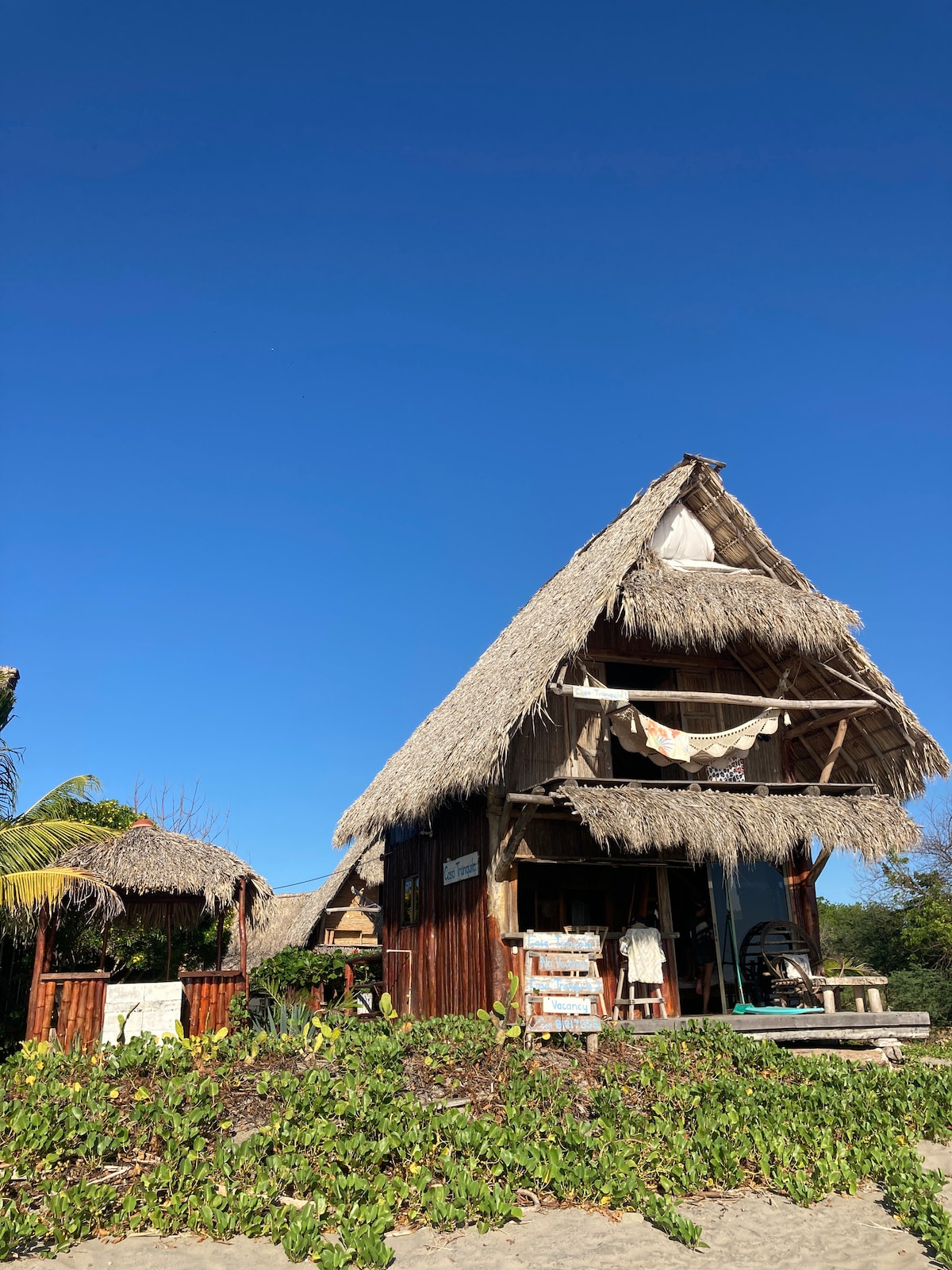 Casa de dos dormitorios frente al mar en Popoyo, justo en la playa. Luminosa y espaciosa, cuenta con cómodas habitaciones, una cocina totalmente equipada, una sala de estar abierta con impresionantes vistas al mar y una piscina compartida. Te quedarás en el segundo piso. Relájate en el balcón frente al mar o haz surf en olas de clase mundial a pocos minutos de distancia. Ubicación tranquila, pero cerca de los restaurantes y bares de playa de Popoyo, perfecta para parejas, familias o amigos que buscan una escapada relajada. Aire acondicionado en cada uno de los dormitorios, internet rápido.