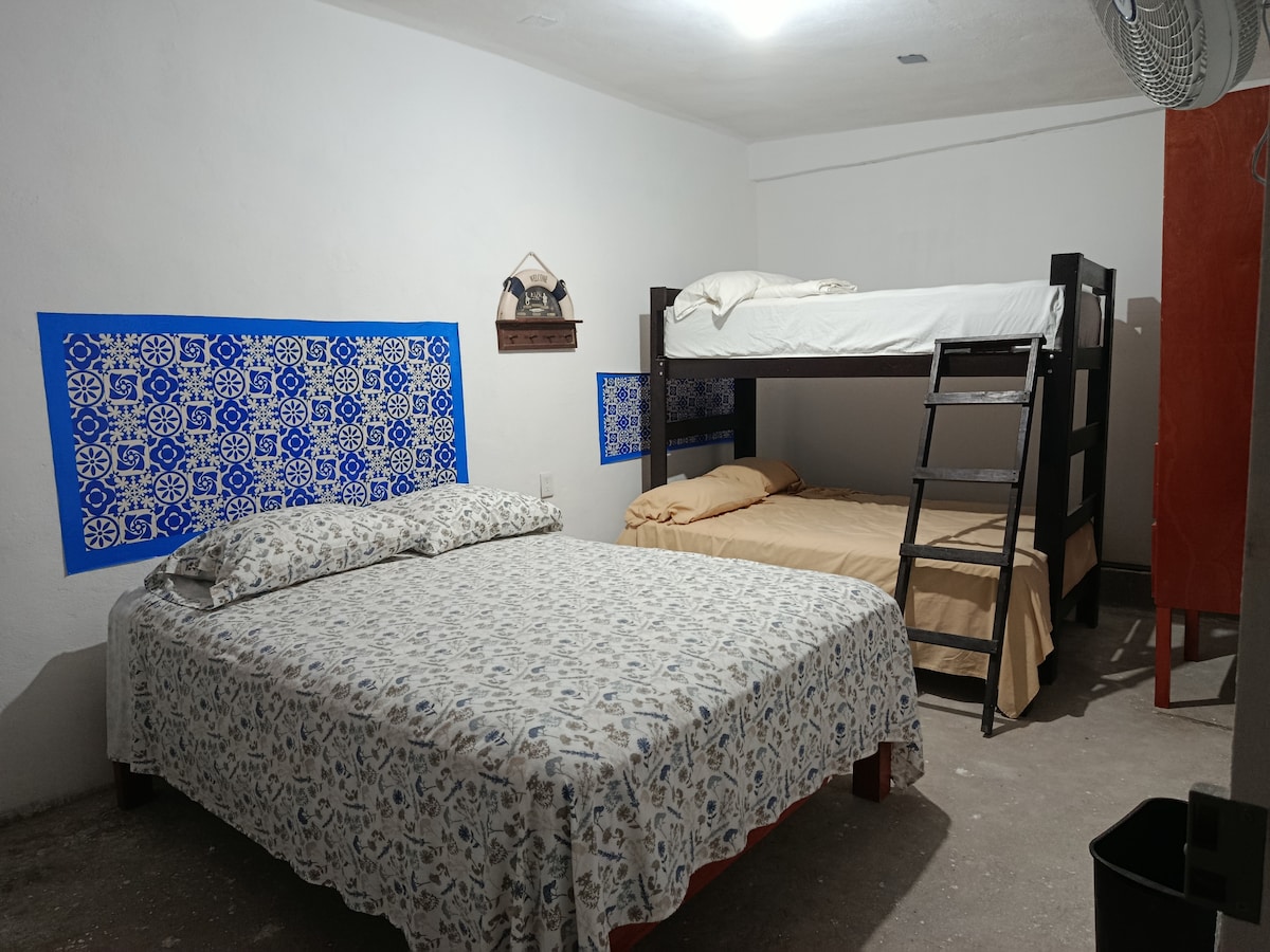 Disfruta de la calidez de este alojamiento tranquilo y céntrico decorado con motivos inspirados en el son jarocho dentro de la propiedad con A.C. a un par de cuadras del mar. Muy cerca del centro histórico. Baño compartido, áreas comunes disponibles y cocina compartida.