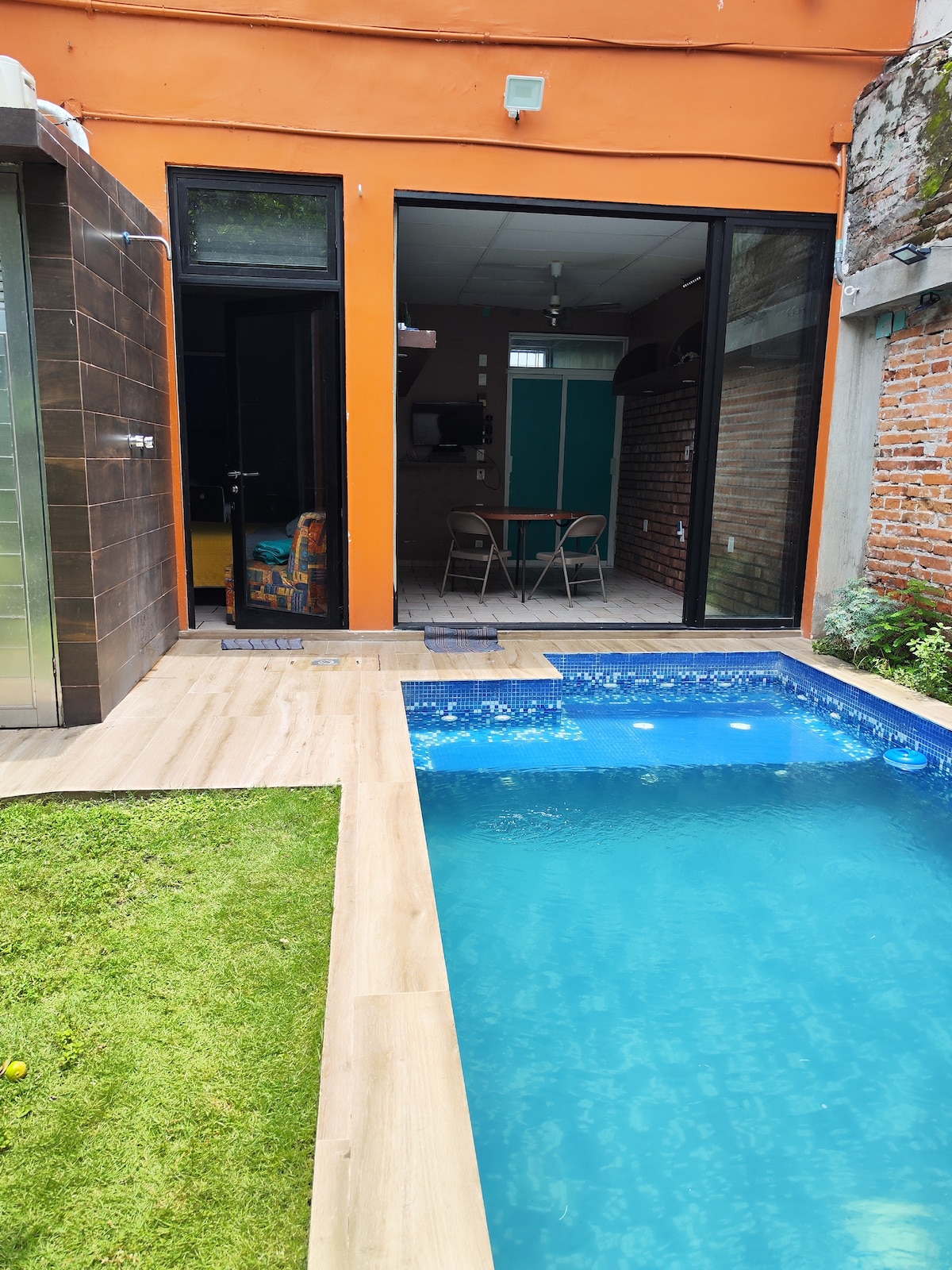 Con ubicación céntrica y entrada independiente, este lugar tiene todo lo que necesitas para tener una estancia cómoda. Cuenta con terraza con asador y mesa, un baño completo, cocina con equipamiento básico y sala con televisión, área de trabajo y sofá-cama matrimonial, la recamara es también matrimonial. Por su estratégica ubicación resulta muy cómodo, teniendo super mercados, restaurantes, cafés, parques, central de autobuses y el centro histórico a menos de cinco minutos a pie.