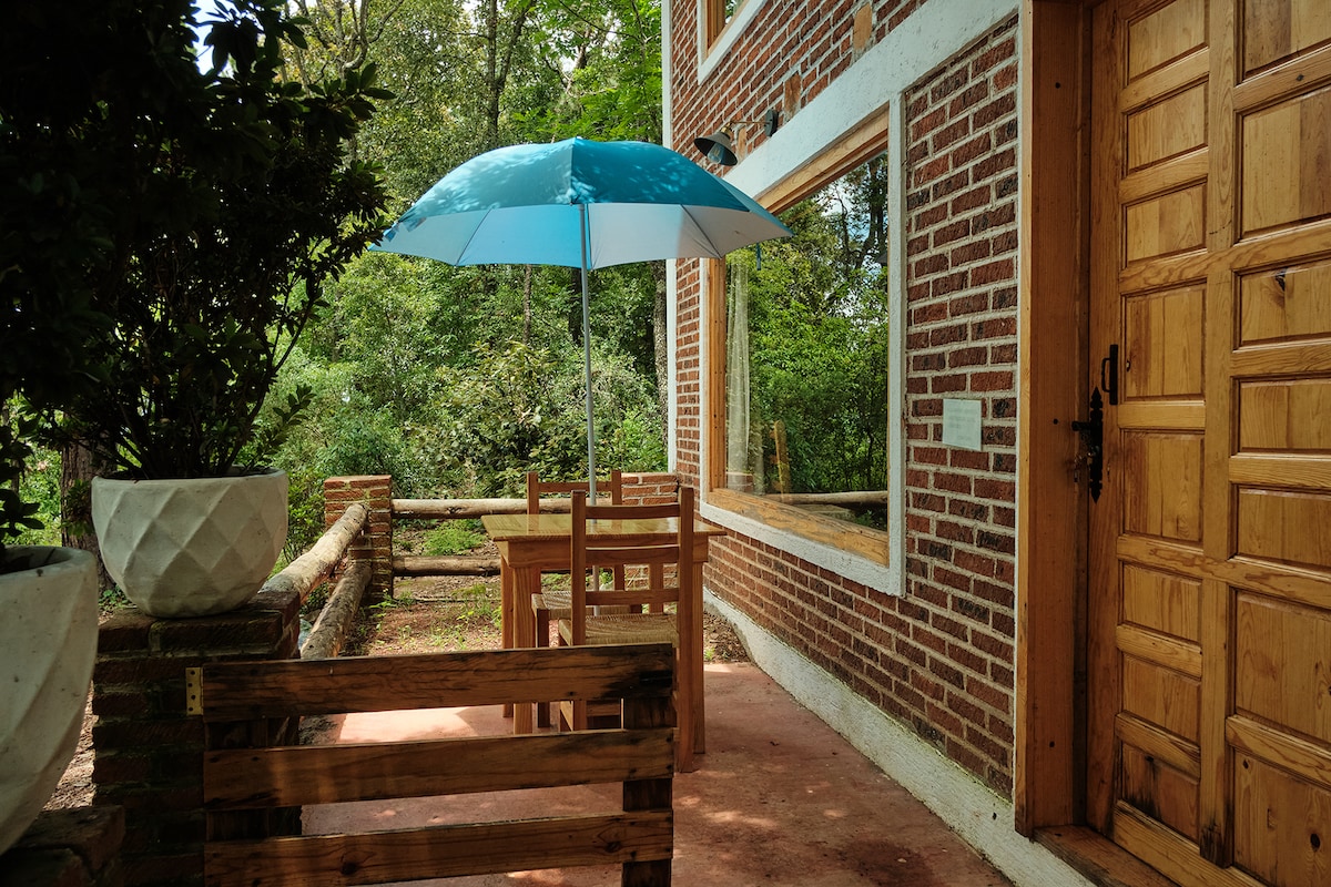 Un alojamiento romántico, Cabaña con vista al bosque, asador, mesa al aire libre, un lugar romántico, único. albercas de aguas termales con toboganes cercanas, Honey cascadas arcoiris a 35 min, Acaxochitlan pueblo con sabor a 25 min