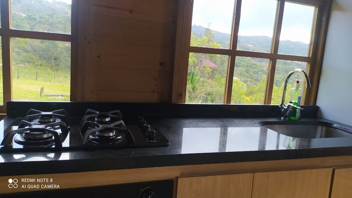 Alma Verde es mucho más que un hospedaje. Es tu casa de campo en un lugar de ensueño; un refugio natural, ubicado en un entorno natural privilegiado, muy cerca del casco urbano de Ráquira. Rodeado de naturaleza exuberante, árboles frutales y flores, que llenan el aire de fragancias y colores; un verdadero oasis de paz. La casa dispone de una habitación grande, cama king y sofá cama, además baño completo, también cuenta con cocina dotada, horno a leña, comedor y sala en un solo ambienté