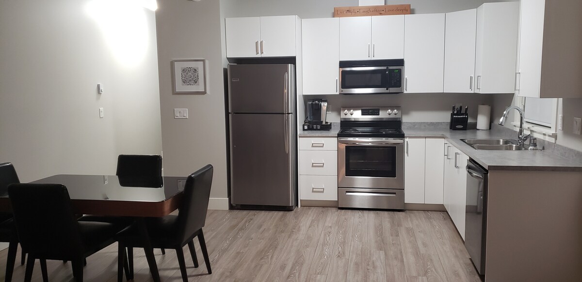 Suite moderna en el sótano a nivel del suelo con luz natural y cocina grande totalmente equipada. Aire acondicionado para el verano, horno para el invierno con chimenea eléctrica y calentadores adicionales en cada dormitorio para asegurarte de que siempre estés cómodo. Espacio bien iluminado con persianas celulares. Puerto USB en cada lámpara para mayor comodidad. Internet rápido de 100 mbps y televisión inteligente con acceso por cable o servicios de streaming. La cocina tiene electrodomésticos de tamaño completo, sistema de filtro de agua y una máquina de hielo en el refrigerador.