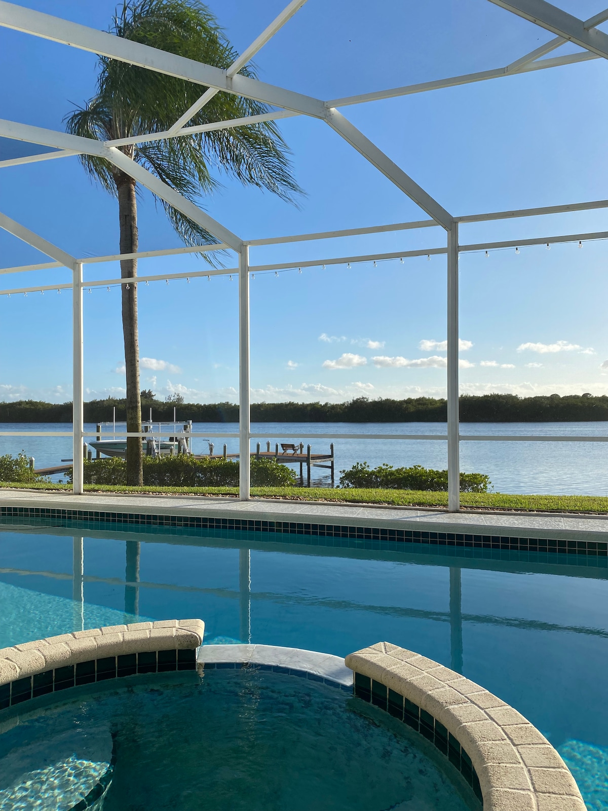 Disfruta de una estancia relajante en una preciosa casa en el soleado sur de Florida. A poca distancia en coche de playas, tiendas y muchos parques naturales. Da un paseo para ver manatíes, béisbol de los Mets, visita la cervecería local o quédate y disfruta de la piscina climatizada y relájate en el spa. Televisores inteligentes en todos los dormitorios, oficina y sala de estar. Wifi rápido para teletrabajar. Estación de bebidas, mesa de billar y equipo de ejercicio. Zona de piscina y spa con parrilla y chimenea. A poca distancia a pie de tiendas de comestibles y restaurantes.