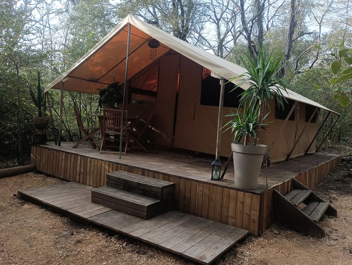 Ubicado en el corazón del hermoso bosque de robles, a 800 metros del famoso Pont du Gard. Nuestra tienda inusual le ofrece la oportunidad de escapar en un entorno natural excepcional. Terraza, cocina equipada, dos dormitorios (una cama de matrimonio y dos individuales). Disfrute de una refrescante ducha de verano, inodoros secos ecológicos y una terraza de madera para relajarse. Situado en una parcela de 8000 m², podrá relajarse en el corazón de la naturaleza. Playa y baño: 10 min a pie .