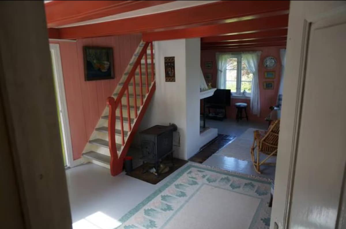Charming summer cabin located on a peninsula with immediate access to the sea. Large, lush garden with plenty of space for relaxation and activities, plus several sunny outdoor seating areas. The cabin is simple and authentic, featuring three bedrooms, kitchen, bathroom, dining room and a cozy living room with a wood-burning stove. Enjoy meals outside in the fresh sea air and swim from the pier – We have a small boat that can be rented by agreement. Perfect for a peaceful seaside getaway.