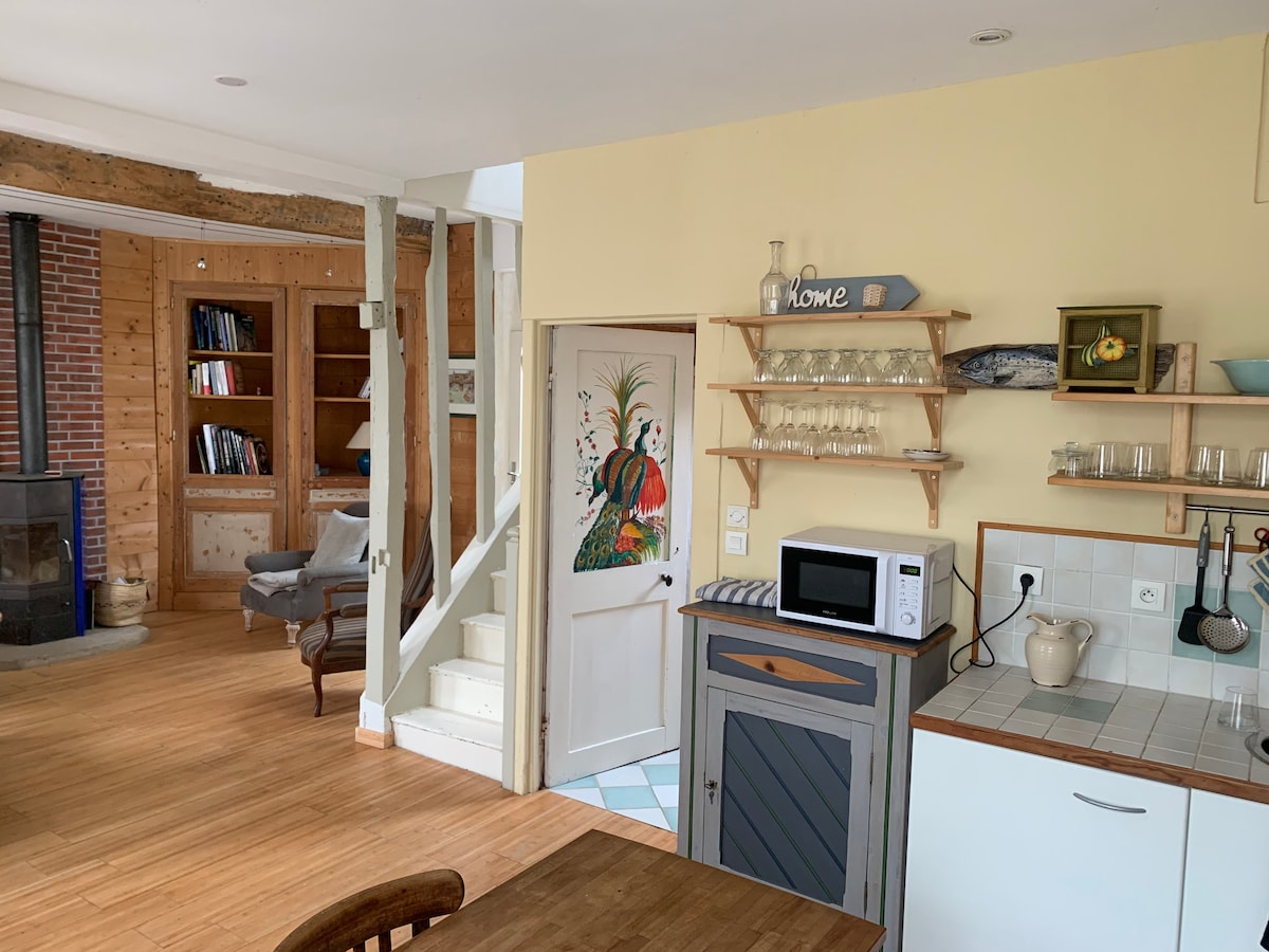 Antiguo taller fotográfico reformado de 90 m2 que ofrece una hermosa altura del techo y un tragaluz. Se encuentra junto a nuestra casa principal en medio de un terreno de 6500 m2. La decoración es vintage, étnica y bohemia. Almuerzo al sol o cena bajo la claraboya, la casa es tan agradable por dentro como por fuera. Especialmente adecuada para soñadores, artistas y viajeros, cansados de los alquileres desinfectados... Para una duración diferente, no dude en ponerse en contacto conmigo