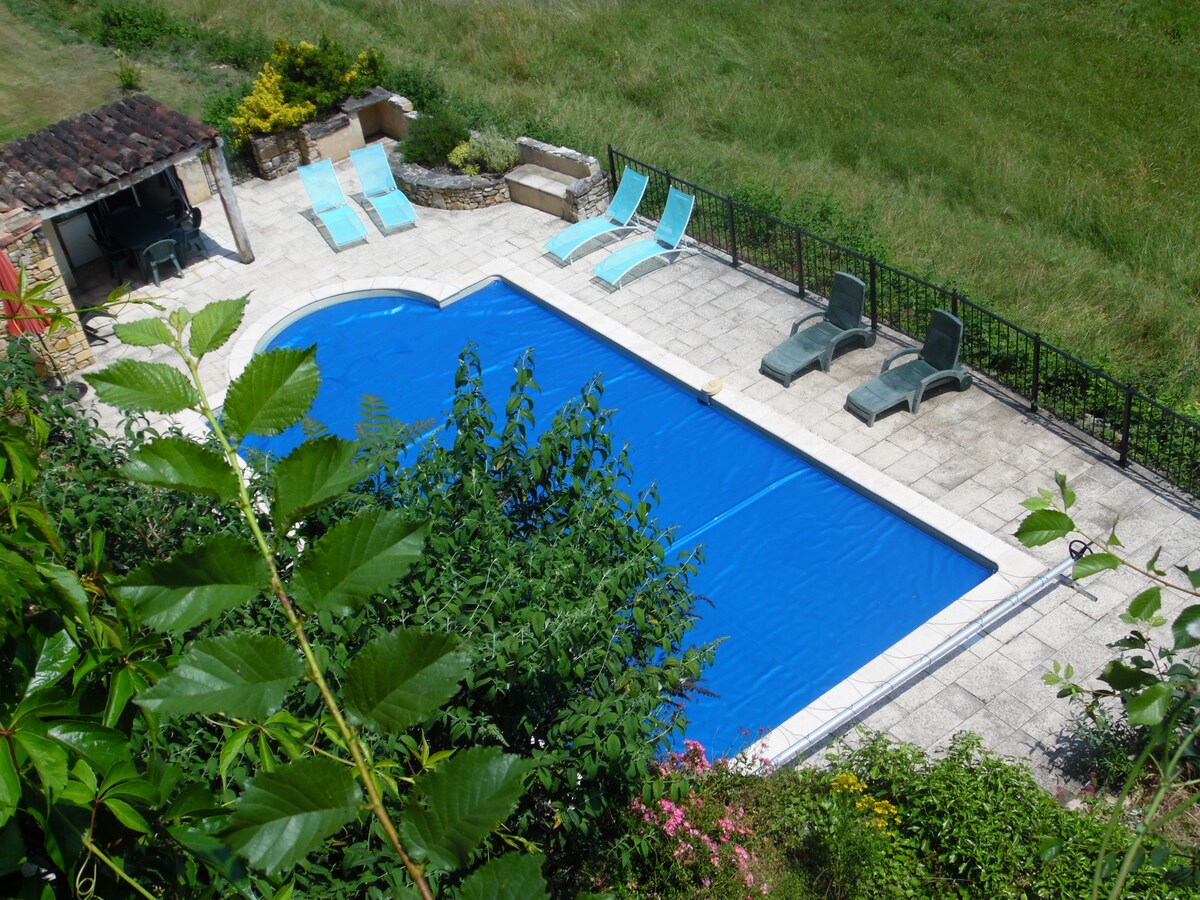 Las dos habitaciones que dejamos son parte de nuestra casa cerca de la piscina (puede darse un baño o acostarse al sol por la mañana y después de las 4 pm en junio, julio y agosto). Tenemos un gato y un perro a los que les encanta la compañía. Vivimos en el campo, pero cerca de Gramat (tiendas y restaurantes) y de Rocamadour , Padirac y no muy lejos del valle de Dordoña. (Sarlat...) Estaremos encantados de entretener a personas de cualquier país (Claudine es una ex profesora de inglés y le encanta conocer gente de habla inglesa).