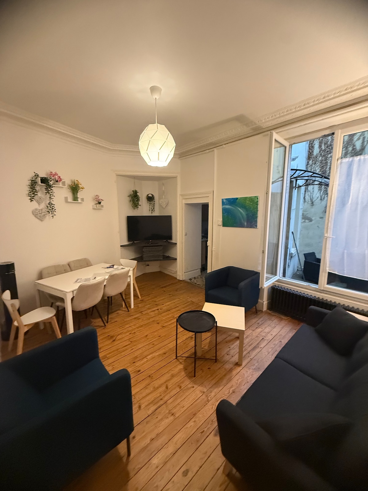 Hola y bienvenidos a nuestra vivienda. Ven y descubre nuestra encantadora casa adosada totalmente equipada y renovada, con una decoración moderna de inspiración escandinava. Idealmente ubicado entre el mercado cubierto (150 m) y el estadio ecuestre Sichon (150 m), estarás a solo unos minutos a pie del centro de la ciudad (8 minutos), los baños termales o el lago Allier (10 minutos). Después de un maravilloso día de turismo, ven y disfruta de la bañera de hidromasaje privada para dos, para un momento compartido de relajación...