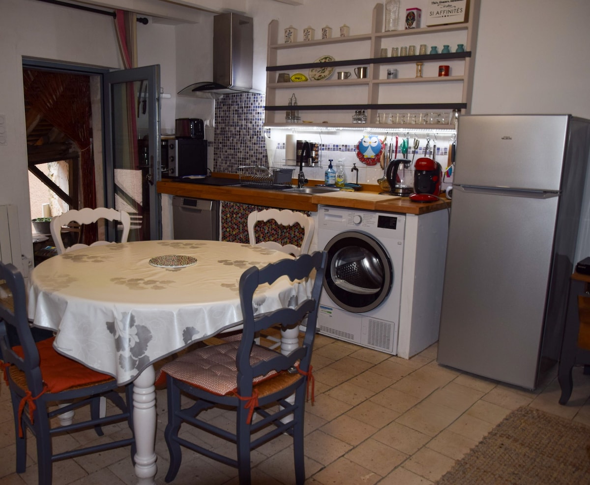 Tómese un descanso y relájese en este alojamiento atípico del sur de Touraine situado en Preuilly Sur Claise. Casa de 45 m2 en 3 niveles: 1 dormitorio (cama para 2 personas), cocina, sala de estar con sofá, jardín. Cerca de las tiendas, a 10 minutos de La Roche-Posay, a 45 minutos del Futuroscope y a 20 minutos de la Brenne. Toallas de baño y ropa de cama incluidas. Póngase en contacto conmigo para obtener más información