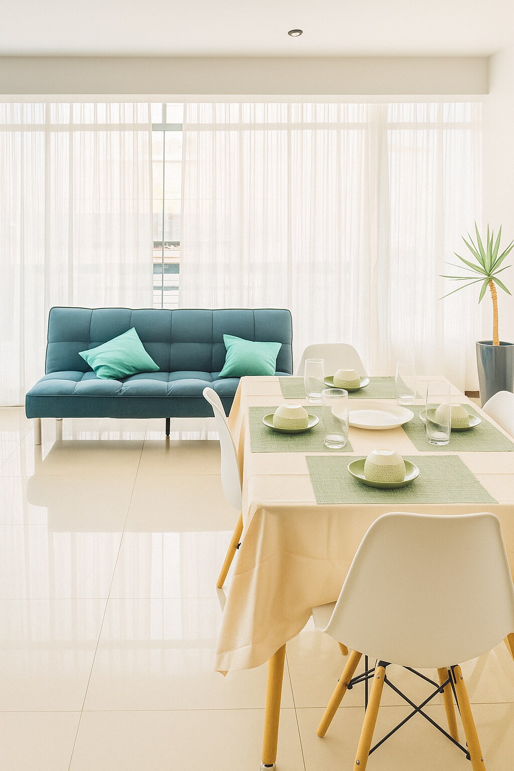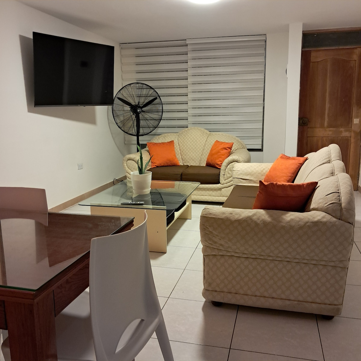 Departamento ubicado en Covicorti, cerca al Mall Plaza, acondicionado hasta para 5 huéspedes. El edificio es familiar, tranquilo y céntrico. El dpt tiene un diseño moderno que te envolverá en comodidad y funcionalidad, cuenta con: - 1 habitación con una cama de 2 plazas. - 1 habitación con un camarote de 1.5 plazas. - 1 sofá cama. - 1 baño completo. - Cocina equipada, ropa de cama, y mucho más.... ¡Sean bienvenidos! Haremos todo lo posible para que su estadía sea exitosa y placentera.