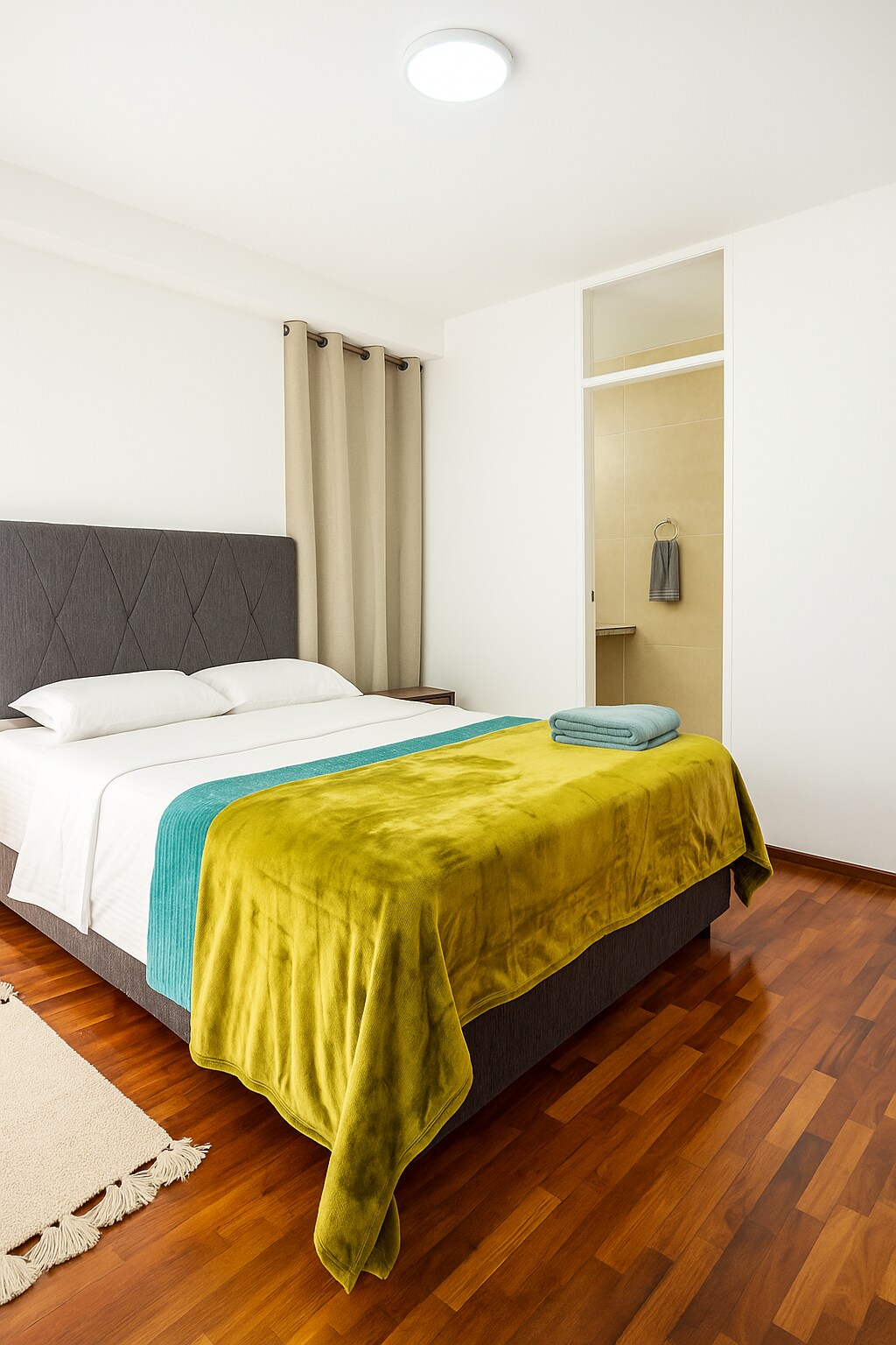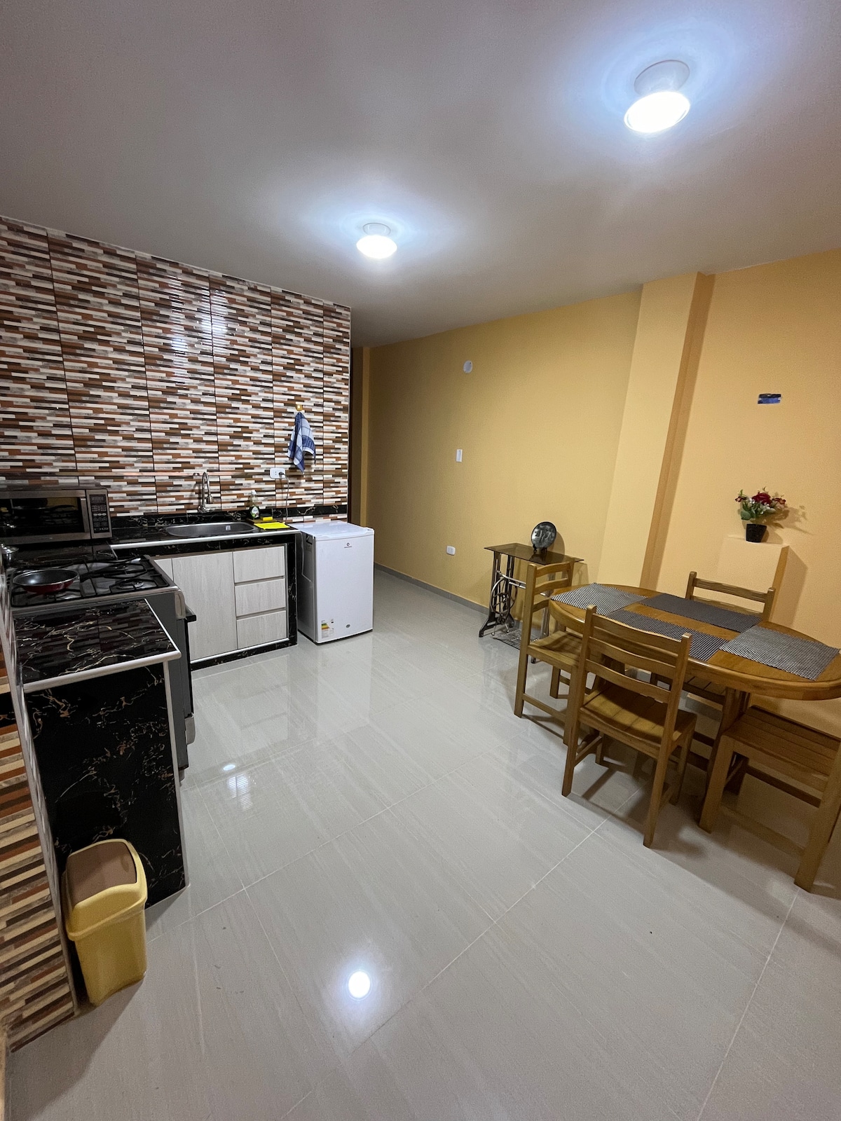 Este minidepartamento privado, ubicado en una zona tranquila y céntrica, es perfecto para relajarte. Con una cocina equipada, un cuarto amplio con TV con cable y un baño cómodo con agua caliente, es ideal para parejas que buscan un lugar acogedor y bien ubicado. Disfruta de la comodidad y la tranquilidad en este espacio diseñado para que tu estancia sea perfecta, ya sea por negocios o placer. Estamos ubicados a 4 cuadras del ovalo Papal, y a 3 cuadras del ovalo Larco.