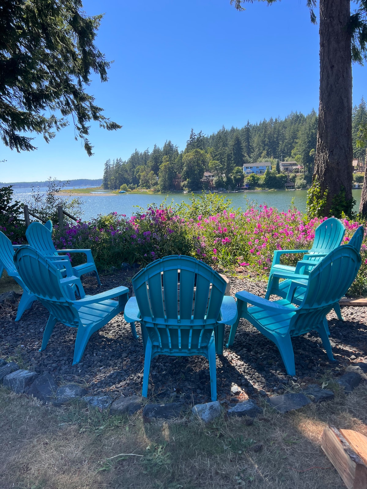 ¡Hermosa casita con increíbles vistas panorámicas al agua en una isla accesible en coche! Un refugio tranquilo en Case Inlet, esta cómoda y elegante casa pequeña ofrece vistas al agua y a la naturaleza desde todos los ángulos. La terraza cubierta privada es un lugar perfecto para disfrutar de las vistas con un acogedor bistró o asientos de bar y parrilla eléctrica. O relájate en el jardín de rocas con la puesta de sol y las estrellas junto al tostado cuenco de fuego de propano. Barrio tranquilo y naturaleza abundante. ¡Puedes ver ciervos, águilas calvas, nutrias, grullas o colibríes!