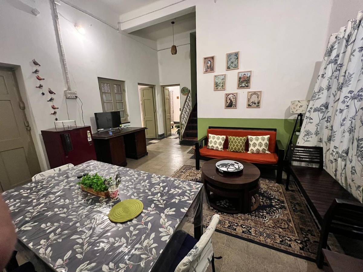 Alójate en el corazón de Calcuta en un bungalow centenario amueblado con muebles antiguos y de época. Todas las comodidades modernas como TV, aire acondicionado, Internet wifi y baño adjunto con geiser. Vuelve a la Calcuta de los años 40 y 50. Verdaderamente un lugar patrimonial. Apartamento tipo estudio de una habitación en el segundo piso en el corazón de Calcuta. Totalmente amueblado, aire acondicionado con baño adjunto. Cocina abierta con estufa eléctrica, horno microondas y nevera. La habitación está habilitada para wifi. No hay ascensor.