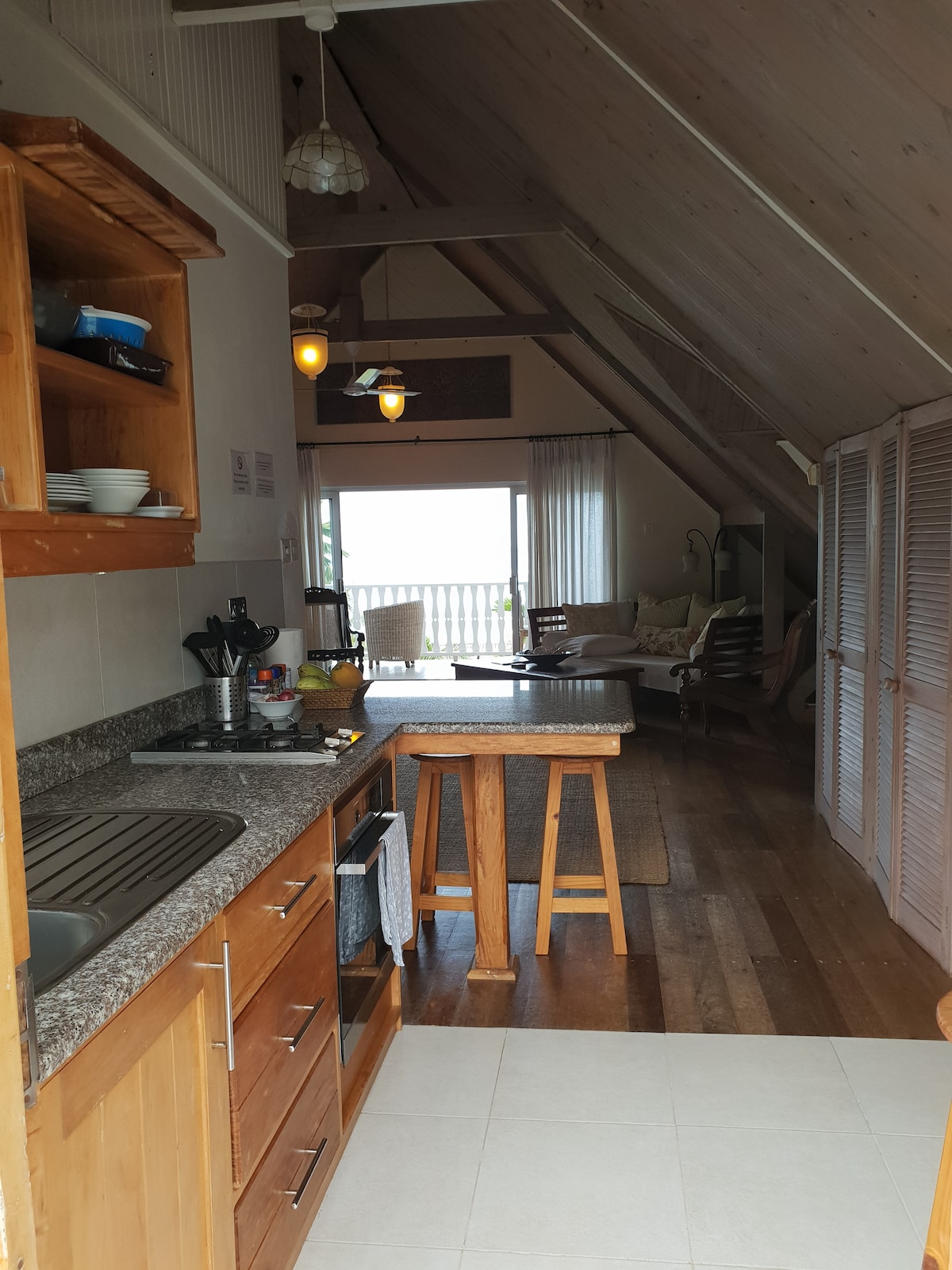 El alquiler más grande en Ti La Kaz es un lujoso apartamento de 3 dormitorios en la planta baja con uso exclusivo de la piscina y el jardín (la piscina NO se comparte con el alquiler del primer piso). Diseño colonial criollo con sensación de casa de playa moderna, decorada con un toque tropical. Este alojamiento es una cómoda casa familiar: luminosa, bien ventilada con ventiladores de techo y grandes ventanas abiertas. Terraza con piscina con vistas al jardín y al mar. Dormitorios con aire acondicionado y baño privado. Wifi gratuito.