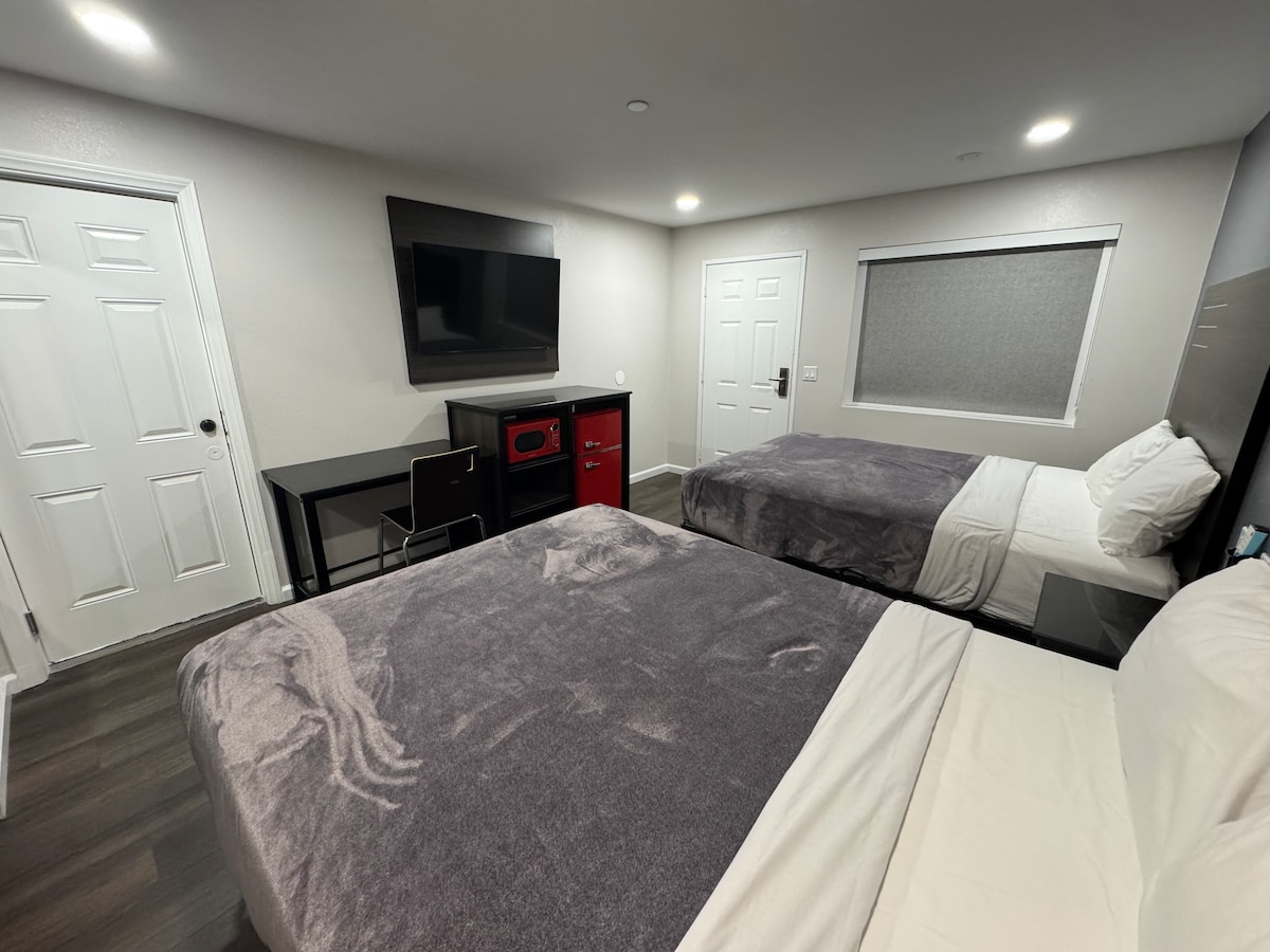 Relájate, recarga las pilas y siéntete como en casa en un alojamiento moderno, limpio, amueblado y seguro situado en Victorville, California. La unidad cubre una amplia gama de servicios como TV, limpieza diaria, habitaciones para no fumadores, extintor de incendios, aire acondicionado, área de estar y cámaras CCTV en áreas públicas.