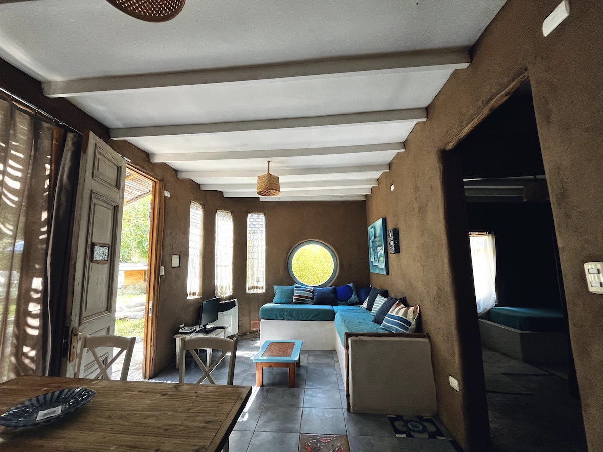 Cabaña privada rústica-moderna ubicada a 2 cuadras de la Plaza de Pisco Elqui,cerca de restaurants y negocios.Estacionamiento privado.1dormitorio con baño privado,1 cama de 2 plazas (sábanas, frazadas, cobertor, almohadas y cojines).1velador, 1 lampara, 2 bajadas de cama, sofá, mueble antiguo restaurado y 1 parlante Bluetooth.1 estufa eléctrica para el invierno.Cocina,lavaplatos y frigobar en la terraza (ollas,loza,cubiertos, tetera,etc) y parrilla a carbón.Alrededor hay mucha vegetación.