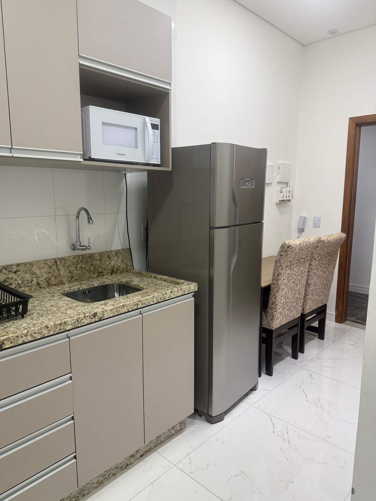 Apto de 02 quartos de casal na entrada da cidade, em um dos bairros mais seguros e funcionais, pois é proximo a inúmeras empresas, ao supermercado, a Havan e a 4 km do centro. Possui estacionamento fechado com portão eletronico, sala com TV Smart, internet WI-FI, escrivaninha para trabalho em um dos quartos, sala com sofa 2 lugares, cozinha com fogão, microondas, geladeira, pratos, panelas, copos e talheres. Possui um jogo de roupas para cada cama e 2 tolhas de banho.