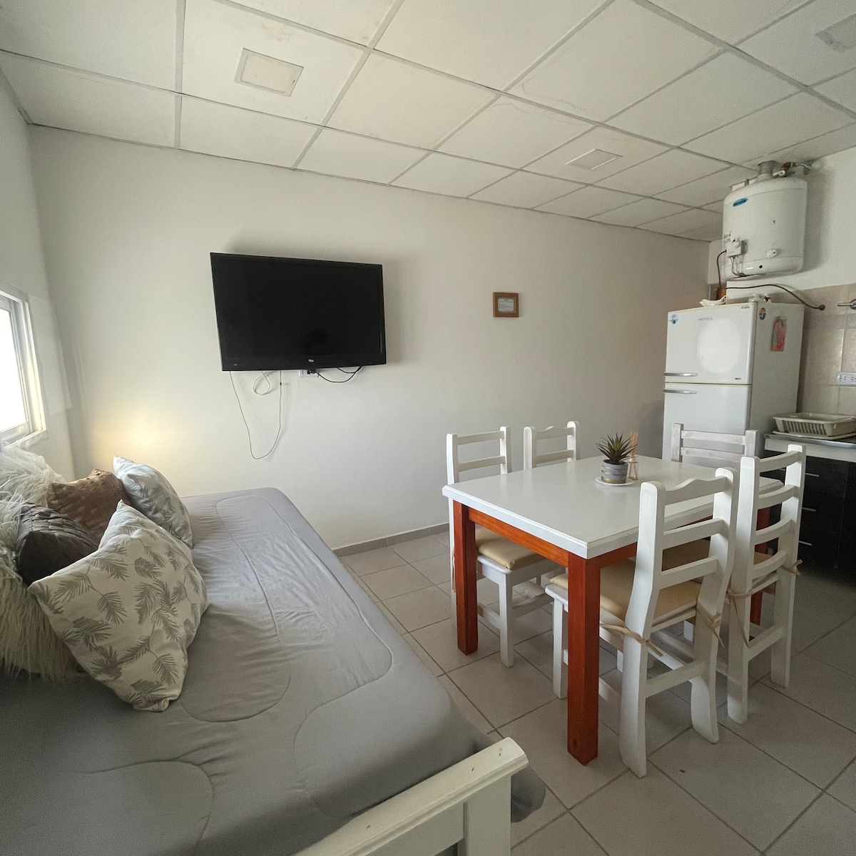 Departamento completo con calefacción y acondicionador de aire en pleno centro de Viedma. Consta de un dormitorio con sommier queen y un sofá cama en el estar comedor. Baño completo y privado. Cocina completa con microondas, horno y utensillos. Ropa blanca.