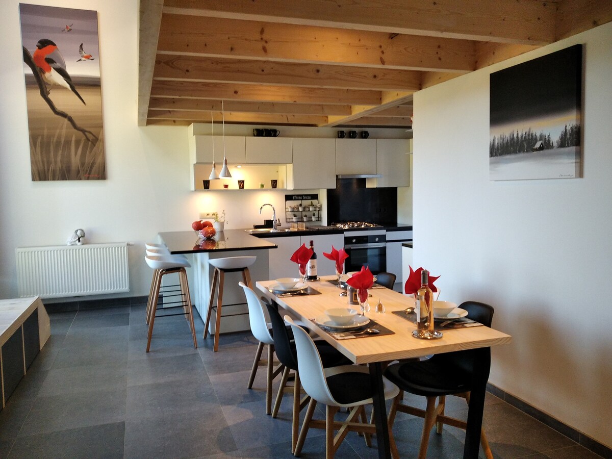‼️THE JACUZZI IS AVAILABLE FROM APRIL TO OCTOBER‼️ Le Vert Paysage (adults only) est un gîte indépendant alliant charme et modernité situé aux pieds des Hautes Fagnes, à proximité de la ville de Malmedy. C’est l’endroit idéal pour un séjour dépaysant et reposant à la campagne. Nous espérons que nos hôtes se sentiront comme chez eux et qu’ils profiteront pleinement de tout ce que notre belle région a à leur offrir.