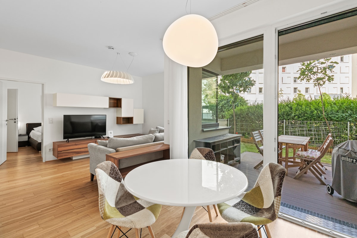 Elegante apartamento de 2 habitaciones con terraza y jardín
