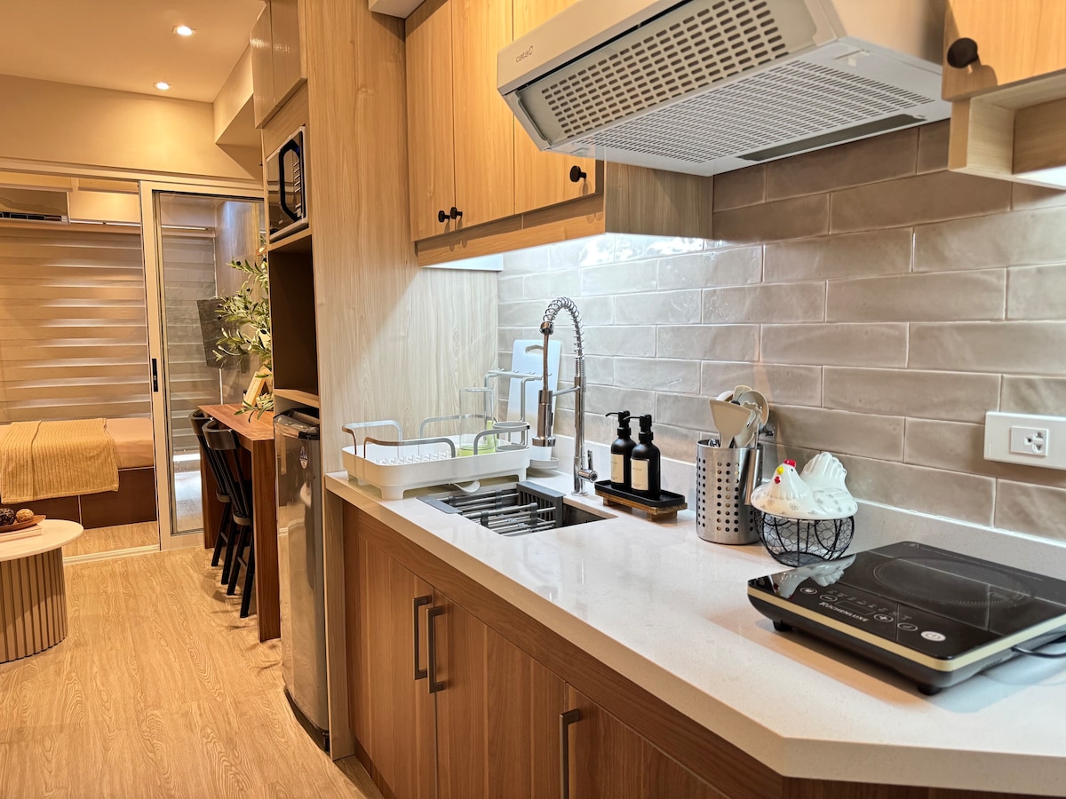 A hotel-type condo features a chic yet cozy industrial design, located at 138 N.Domingo St. Centro Tower, Cubao, Quezon City. Conveniently, just steps away from restaurants, shops, and malls the unit offers easy access to everything you need. It is also highly accessible via public transportation, making it an ideal home base for exploring the city. Whether visiting for business or leisure, this stylish industrial-inspired condo provides the perfect space to relax and unwind after a long day.
