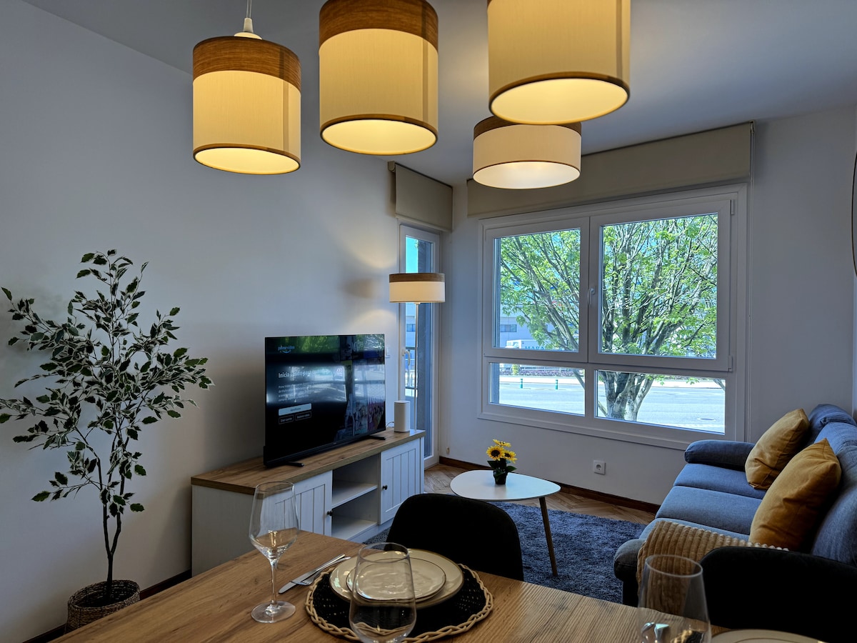 Acogedor apartamento en el corazón de la ciudad, situado en el centro neurálgico de Vigo, con todos los servicios a mano con los mejores restaurantes y cafeterías a un paso. Muy luminoso y moderno, sin ruidos, donde desde el primer momento te puedes sentir como en casa. Con cristales aislantes Climalit dobles, amplio sofá chaiselongue, televisión smart TV de 50 pulgadas de alta definición 4K con ambilight. Limpiado y desinfectado exhaustivamente después de cada estancia.